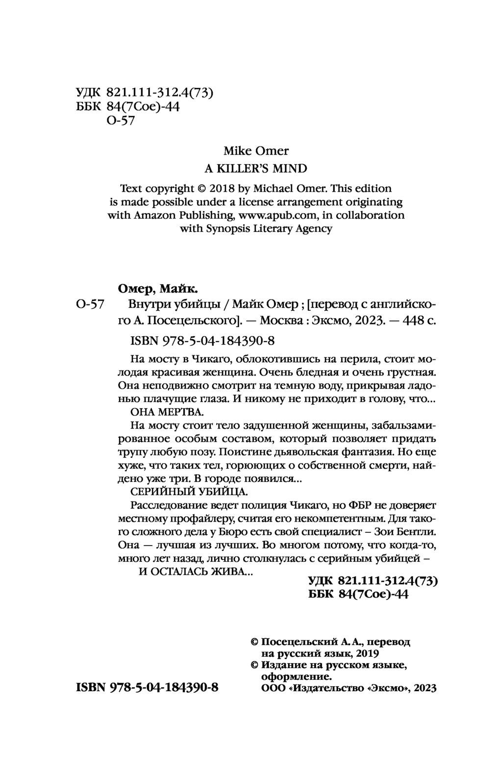 Расследование ведет полиция Чикаго, но ФБР не доверяет местному профайлеру, считая его некомпетентным. Для такого сложного дела у Бюро есть свой специалист – Зои Бентли. Она – лучшая из лучших. Во-многом потому, что когда-то, много лет назад, лично столкнулась с серийным убийцей – И ОСТАЛАСЬ ЖИВА...
