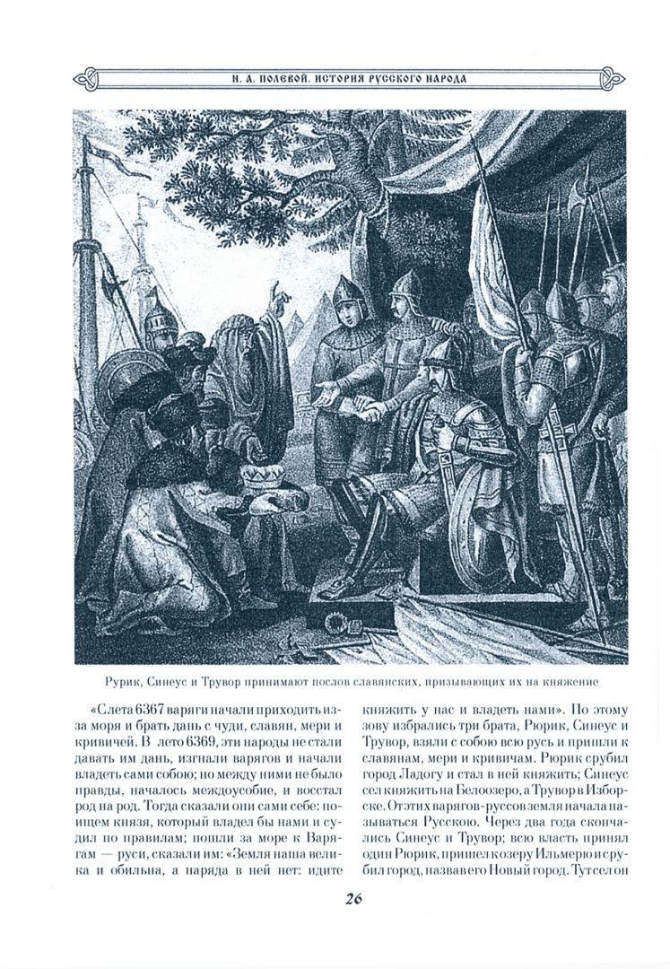 Николай Алексеевич Полевой (1796-1846) – заметная фигура в плеяде звезд русской литературы первой половины XIX века. Из-под его пера вышло много произведений, и особое место среди них занимает "История русского народа", написанная в противопоставление другому известному произведению: "Истории государства Российского" Н. М. Карамзина. Если Карамзин основное внимание уделяет деятельности правителей и других ярких личностей, чья воля и харизма прямо оказывают влияние на ход событий, то Полевой стремился выявить в первую очередь "общее начало" и "народный дух" русской истории. За русским народом, соединившим в себе "воображение Востока с умом Запада", он видел будущее. Изначально планировалось написать 12 томов и завершить изложение 1829-м годом, но в реальности вышло только 6 томов, и рассказ обрывается на завоеваниях Ивана IV.
