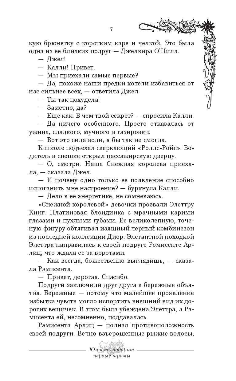Шесть учениц элитной школы для девушек, как и все остальные их сверстники, переживают юность – непростой, хрупкий и очень важный период. Первая любовь, первое предательство, поиск себя, нескончаемые конфликты с родителями и внутренними демонами – каждая из наших героинь пройдет свой тяжелый, интересный путь. В каждой из них мы узнаем себя, свои пороки и достоинства. Это история о дружбе, взрослении, разрушении воздушных замков, а также о соперничестве, переросшем в страшную вражду, что приведет к непоправимым последствиям и первым шрамам...