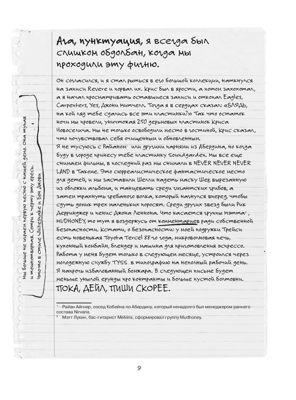 Курт Кобейн – рок-музыкант, основатель группы Nirvana, ставшей голосом не одного поколения. Талантливый и непонятый гений, трагично и слишком рано ушедший из жизни. Перед вами ключ к тайнам самого влиятельного и загадочного певца XX века – уникальное издание подлинных дневников Курта Кобейна, позволяющих по-новому узнать знаменитого фронтмена. Десятки блокнотов он заполнил комиксами и набросками песен, размышлениями о музыке и славе, о политике и индустрии рока, о личном и самом болезненном. За всем этим легендарный гитарист раскрывается с новой интимной стороны, недоступной прежде поклонникам. Его записи пропитаны сарказмом и грустью, гневом и решимостью, но при этом – еще и искренностью. Познакомьтесь с культовым музыкантом заново через дневники, которые он скрывал даже от самых близких.