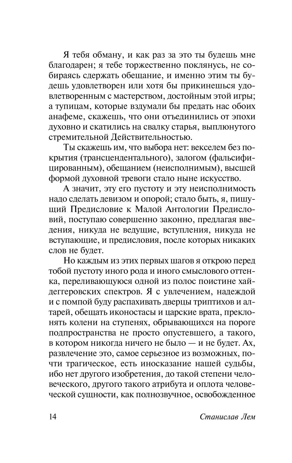Перед вами – "литературные апокрифы" Станислава Лема. Предисловия к ненаписанным книгам, рецензии на несуществующие романы, иронические псевдонаучные лекции, выдуманные от начала до конца. Произведения философские, забавные, бесконечно оригинальные – и, по-лемовски, неподражаемо остроумные!
