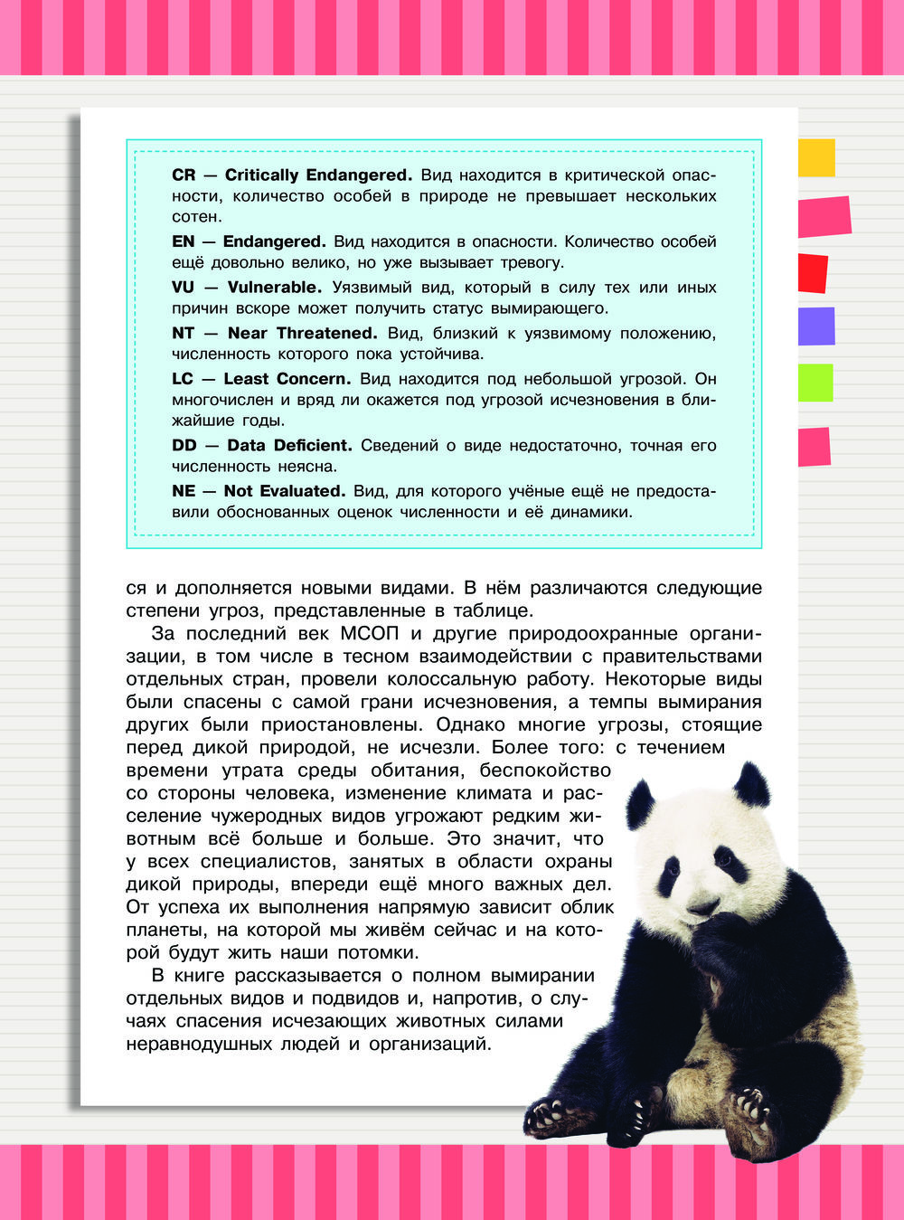 В этом сборнике собраны самые грустные и самые оптимистичные страницы Красной книги. "Чёрные страницы" – это рассказ о вымерших животных. Они полностью исчезли с лица Земли, и чаще всего причиной гибели этих видов стала деятельность человека. К ним примыкают "Серые страницы": в них собраны виды, которым грозит серьезная опасность. "Белые страницы" – удивительные и трогательные истории о животных, которых удалось спасти и вернуть в дикую природу. Это победа неравнодушных людей, внимательно относящихся к окружающему миру, не сдающихся под давлением обстоятельств. И эти истории дарят человечеству надежду на сохранение прекрасного мира дикой природы в самых разных уголках земного шара.