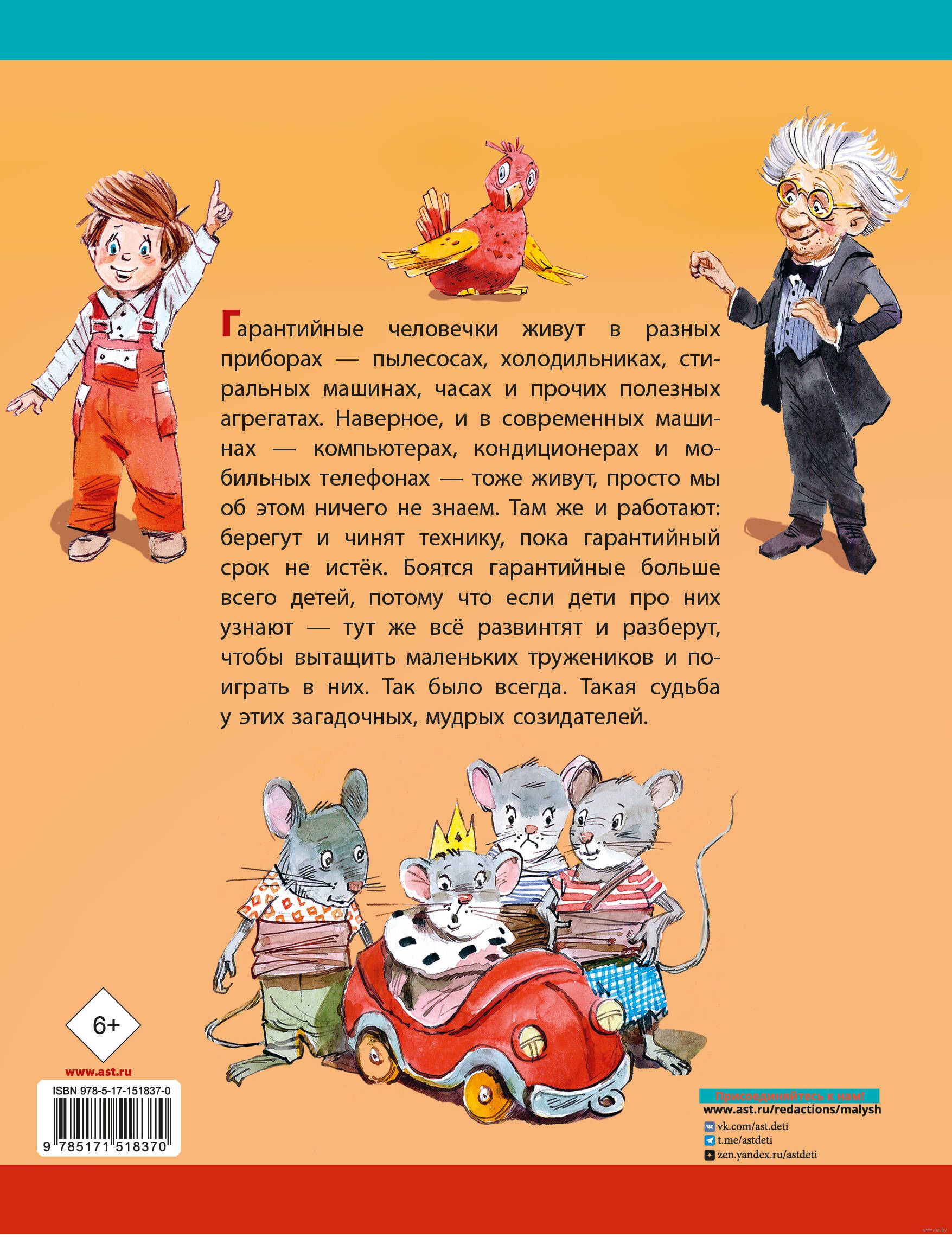 Повесть Э. Успенского "Гарантийные человечки" – о маленьких мастерах, которые живут и работают в разных полезных механизмах: пылесосах, холодильниках, даже в грузовых машинах. О них никто не знает, кроме директоров разных заводов и фабрик. Жизнь у гарантийных трудная и опасная, ведь им приходится не только в тайне от людей заботиться об их бытовой технике, но и беречься от мышей и, особенно, детей. Почему? Об этом вы узнаете, прочитав повесть "Гарантийные человечки". Первая публикация новых иллюстраций Вадима Челака.