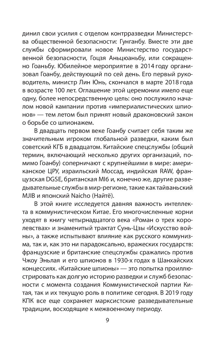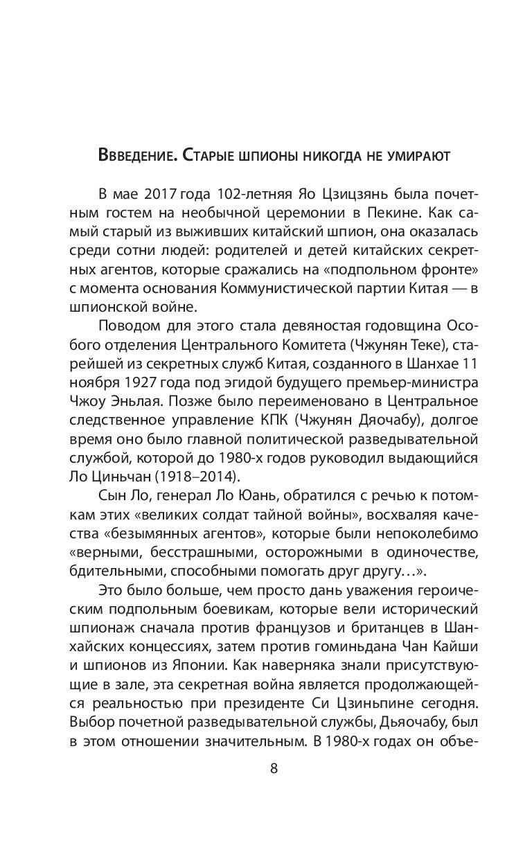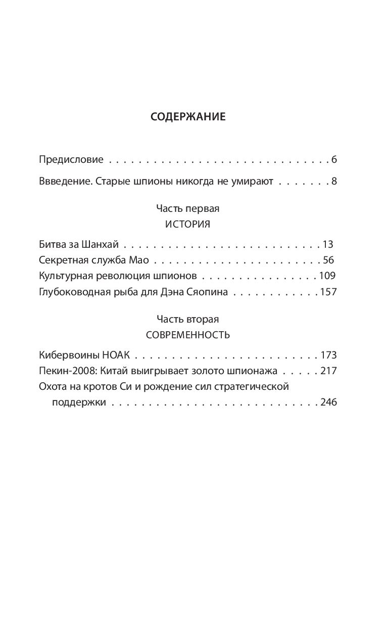 Эта книга основана на ранее не публиковавшихся документах и личных беседах автора с десятками источников в спецслужбах всего мира. Это подробная и сенсационная история китайской разведки за 100 лет. Автор показывает, что китайские шпионы были и есть повсюду: среди ученых, журналистов, дипломатов, студентов и бизнесменов. Их след виден везде: от сталинских чисток до терактов 11 сентября и ухода Байдена из Афганистана. Кажется, тайные агенты Поднебесной всесильны... Так ли они велики, как китайская экономика и амбиции Си Цзиньпина? Чему можно научиться у них? Опасно ли это?