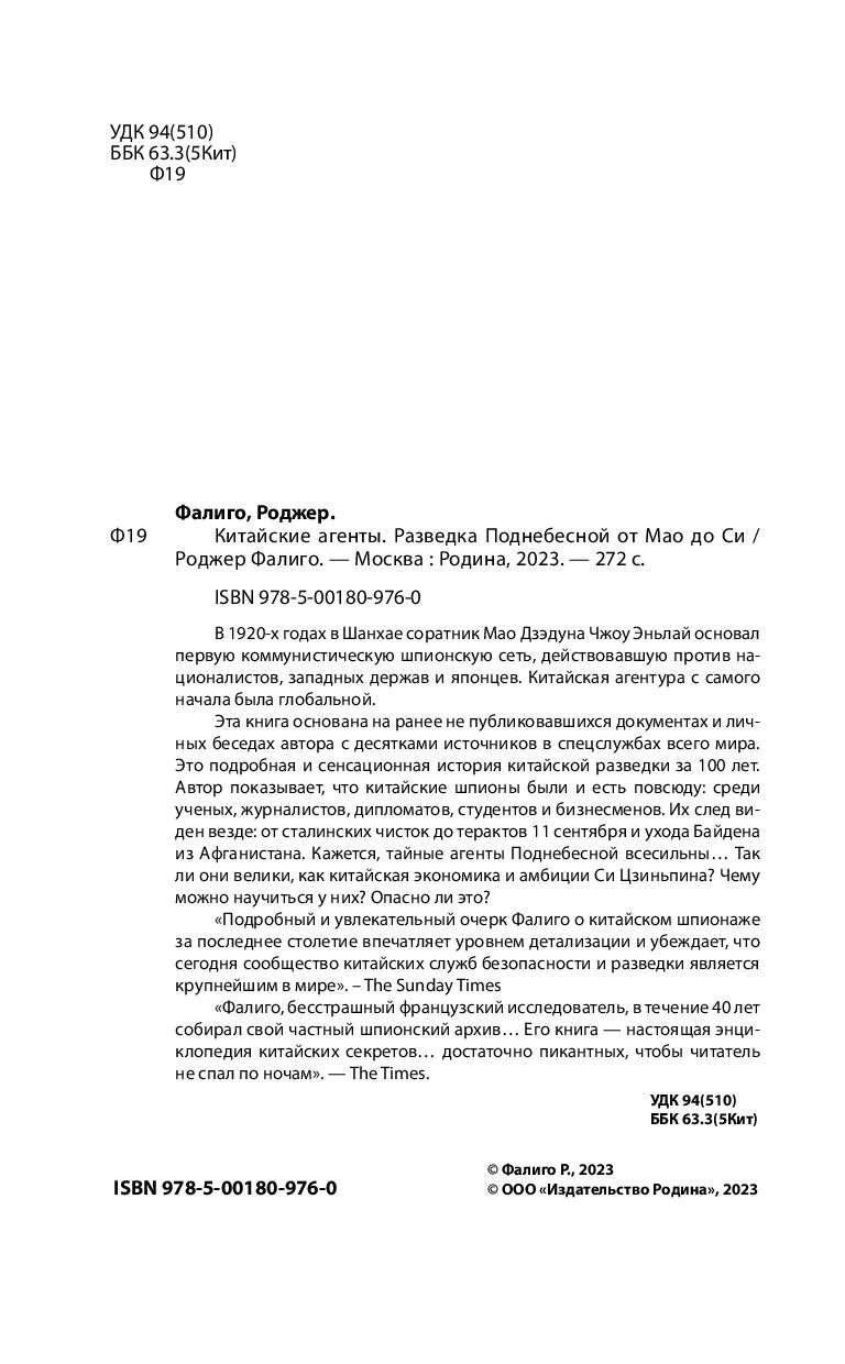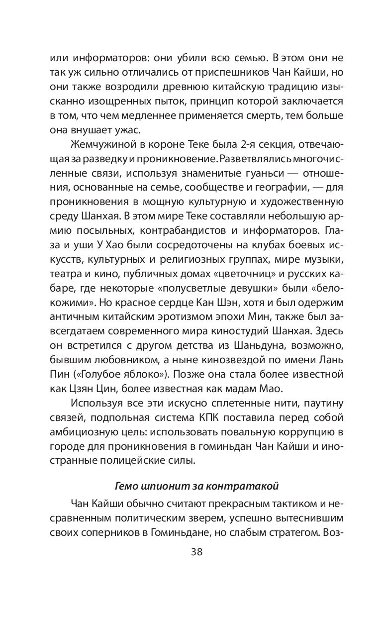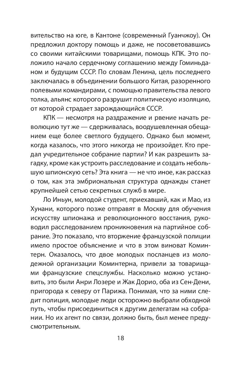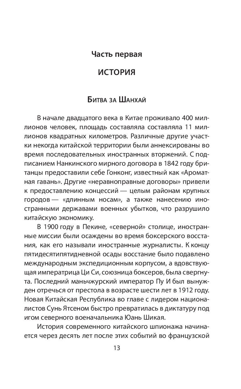 Эта книга основана на ранее не публиковавшихся документах и личных беседах автора с десятками источников в спецслужбах всего мира. Это подробная и сенсационная история китайской разведки за 100 лет. Автор показывает, что китайские шпионы были и есть повсюду: среди ученых, журналистов, дипломатов, студентов и бизнесменов. Их след виден везде: от сталинских чисток до терактов 11 сентября и ухода Байдена из Афганистана. Кажется, тайные агенты Поднебесной всесильны... Так ли они велики, как китайская экономика и амбиции Си Цзиньпина? Чему можно научиться у них? Опасно ли это?
