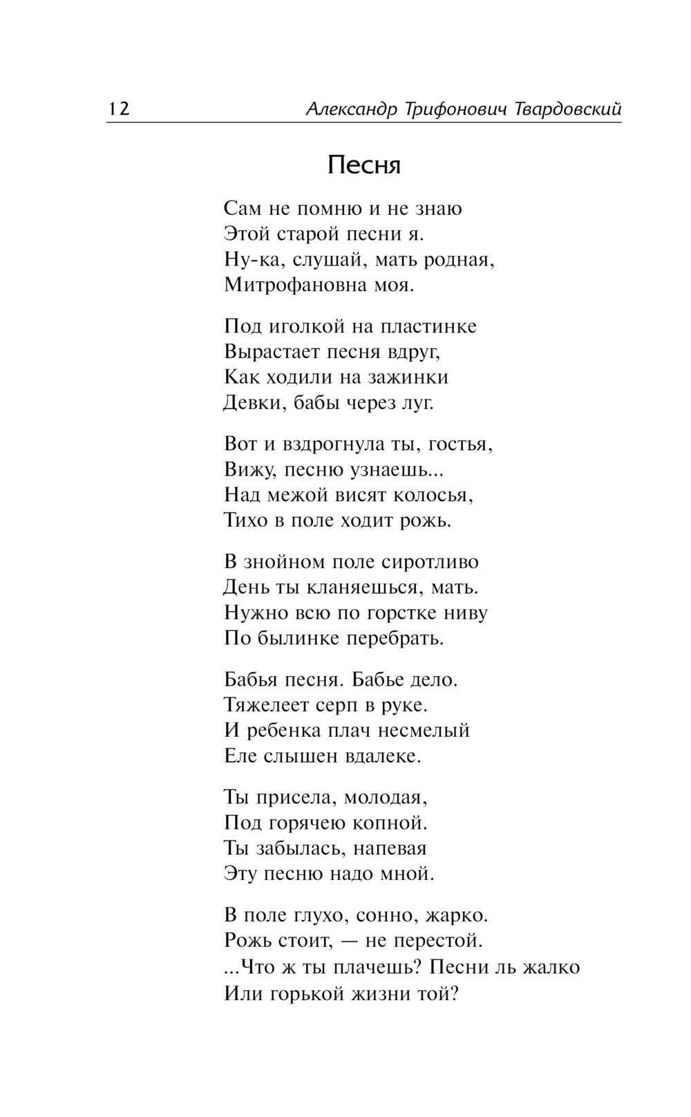 В сборник также вошли стихотворения разных лет – преимущественно поздняя лирика Твардовского, его осмысление жизни и творческого пути.