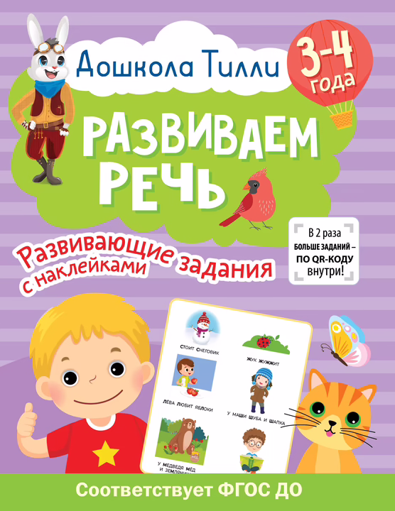 3-4 года. Дошкола Тилли. Развиваем речь. Развивающие задания с наклейками