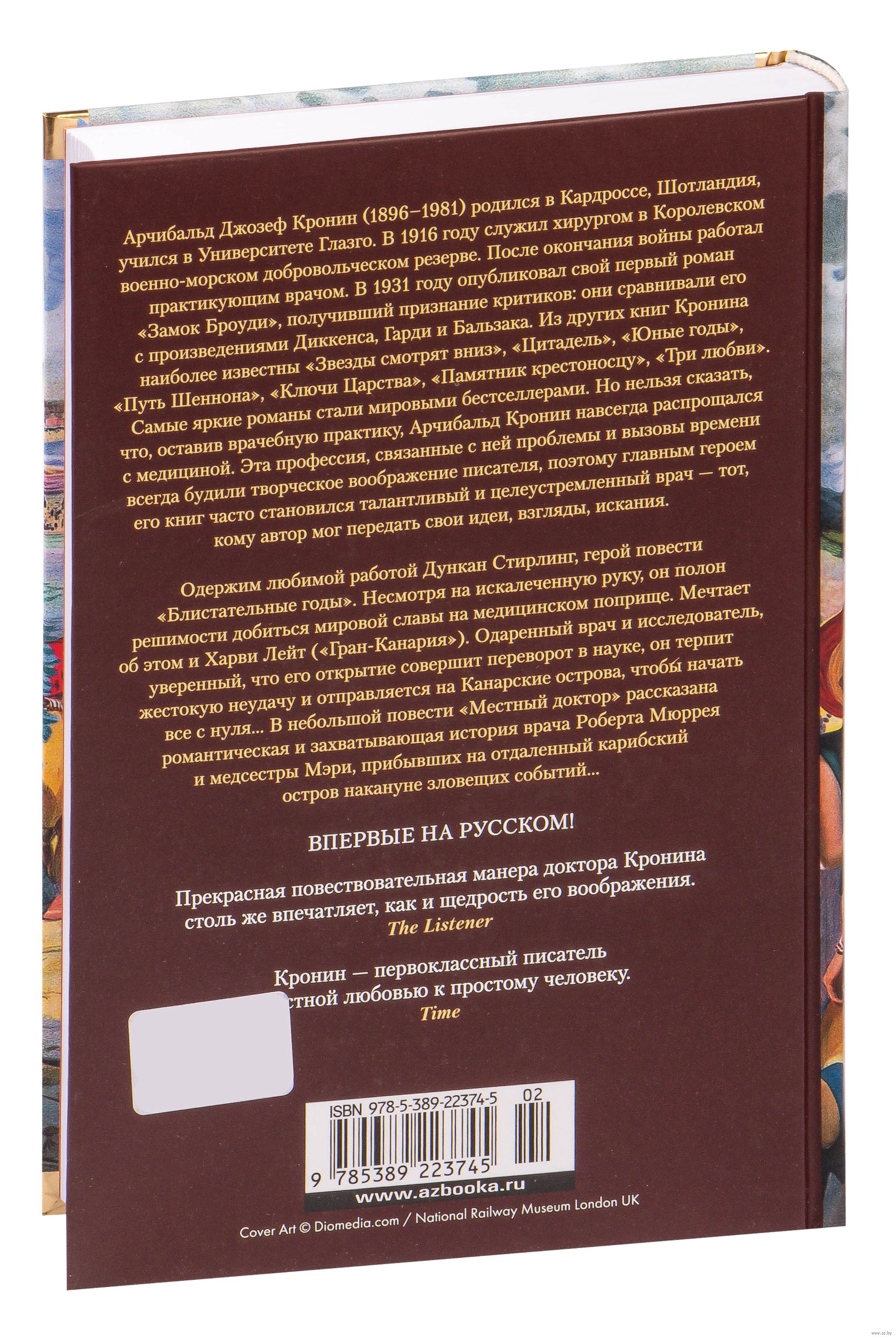 Одержим любимой работой Дункан Стирлинг, герой повести "Блистательные годы". Несмотря на искалеченную руку, он полон решимости добиться мировой славы на медицинском поприще. Мечтает об этом и Харви Лейт ("Гран-Канария"). Одаренный врач и исследователь, уверенный, что его открытие совершит переворот в науке, он терпит жестокую неудачу и отправляется на Канарские острова, чтобы начать все с нуля... В небольшой повести "Местный доктор" рассказана романтическая и захватывающая история врача Роберта Мюррея и медсестры Мэри, прибывших на отдаленный карибский остров накануне зловещих событий...