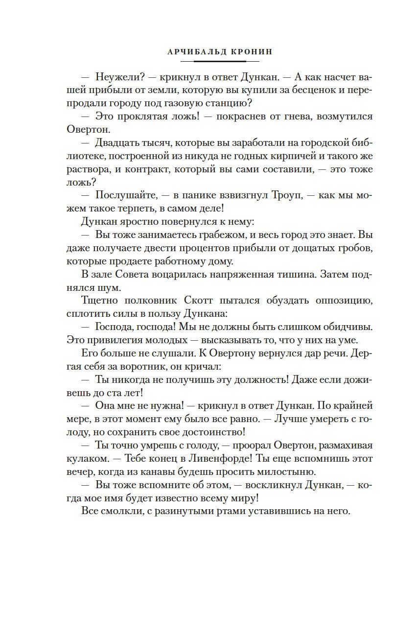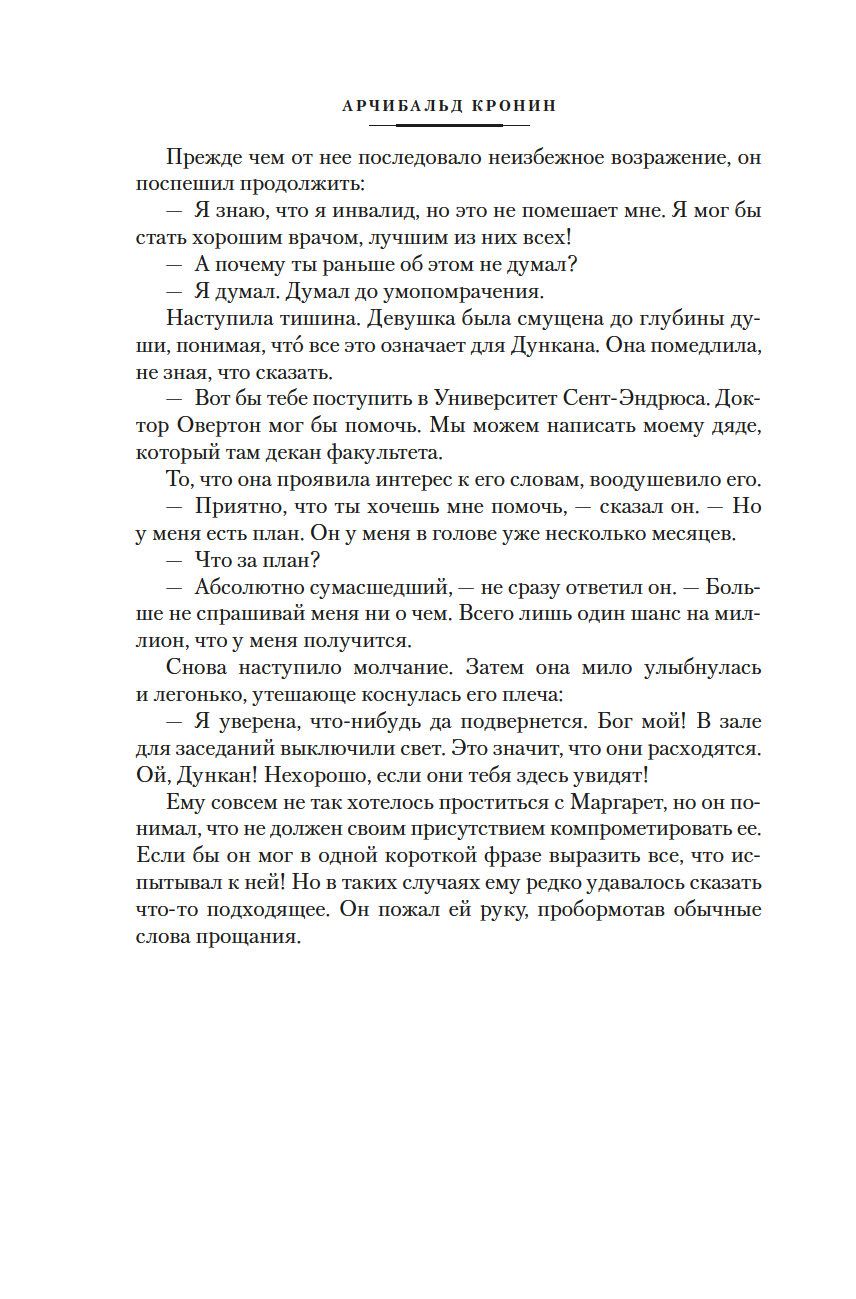 Арчибальд Джозеф Кронин (1896-1981) родился в Шотландии, окончил Университет Глазго, работал врачом в Южном Уэльсе и Лондоне. Но его истинным призванием стала литература, которой он посвятил себя после оглушительного успеха своего первого романа "Замок Броуди". Из других книг А. Кронина наиболее известны "Звезды смотрят вниз", "Цитадель", "Юные годы", "Путь Шеннона", "Ключи Царства", "Памятник крестоносцу", "Три любви". Самые яркие романы принадлежат к числу бестселлеров, разошедшихся огромными тиражами по всему миру; по мотивам произведений Кронина создано более 30 экранизаций. Но нельзя сказать, что, оставив врачебную практику, Арчибальд Кронин навсегда распрощался с медициной. Эта профессия, связанные с ней проблемы и вызовы времени всегда будили творческое воображение писателя, поэтому главным героем его книг часто становился талантливый и целеустремленный врач – тот, кому автор мог передать свои идеи, взгляды, искания.