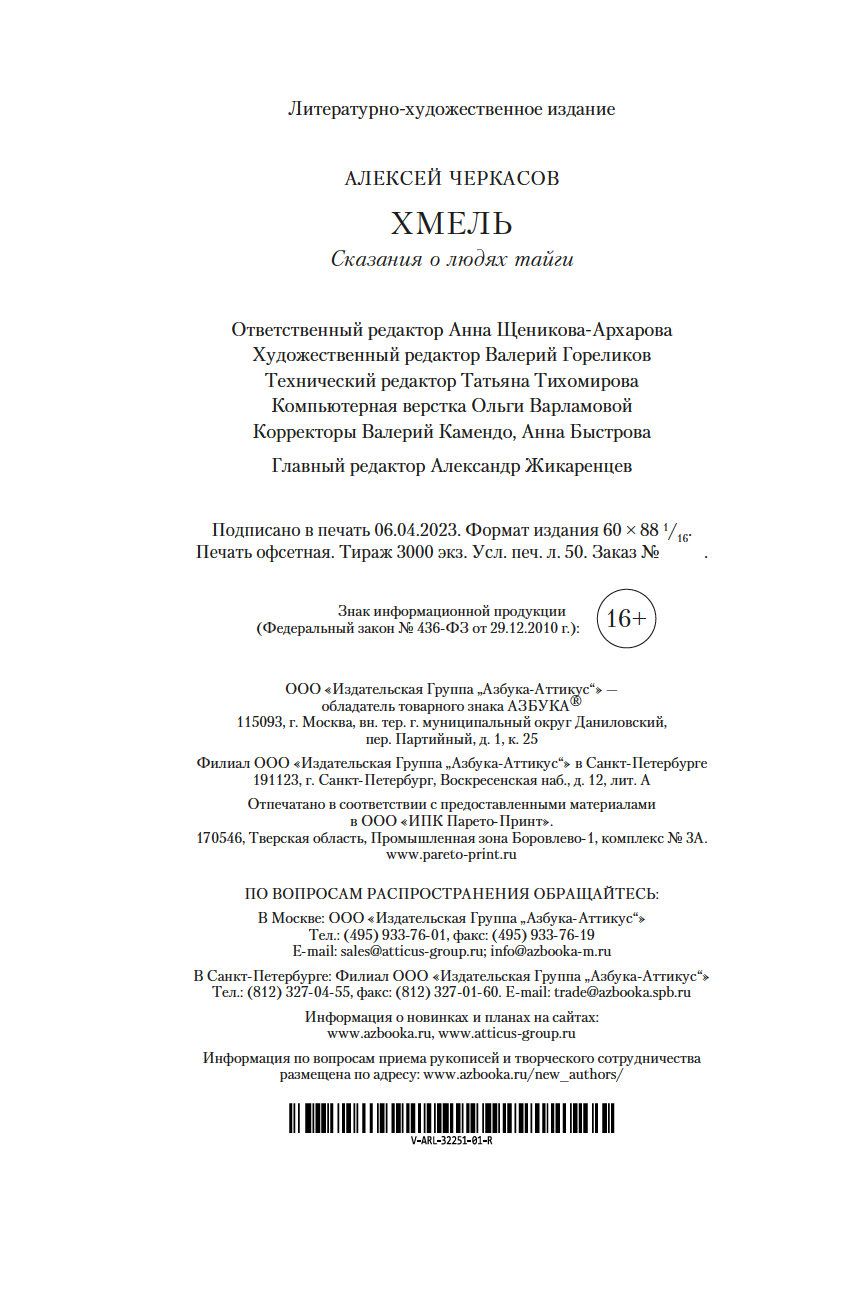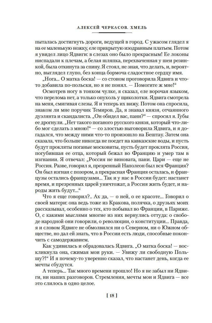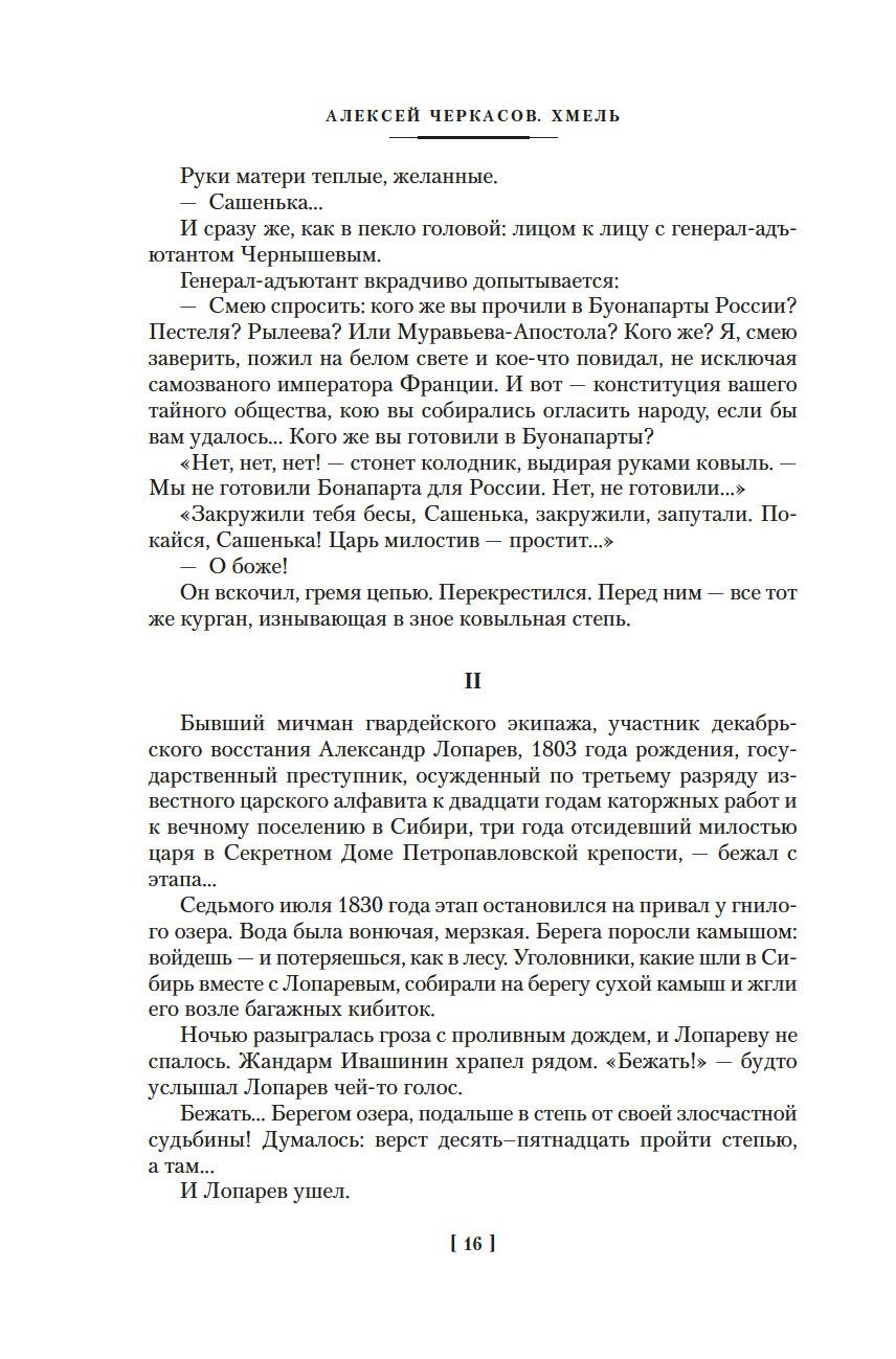 Роман "Хмель" – первая часть знаменитой трилогии "Сказания о людях тайги", прославившей имя русского советского писателя Алексея Черкасова. Созданию романа предшествовала удивительная история: загадочное письмо, полученное Черкасовым в 1941 г., "написанное с буквой ять, с фитой, ижицей, прямым, окаменелым почерком", послужило поводом для знакомства с лично видевшей Наполеона 136-летней бабушкой Ефимией. Ее рассказы легли в основу сюжета первой книги "Сказаний".