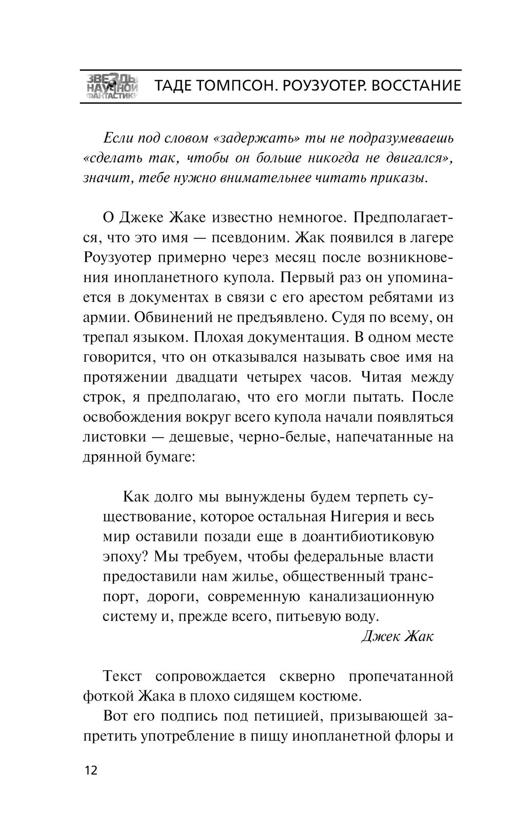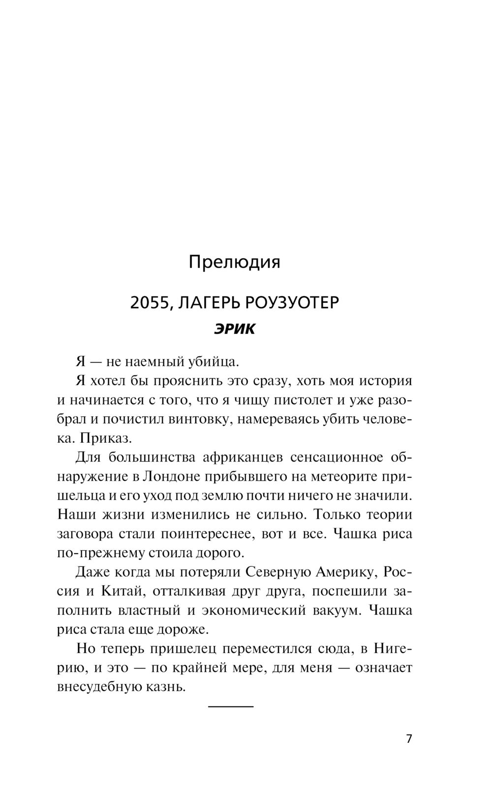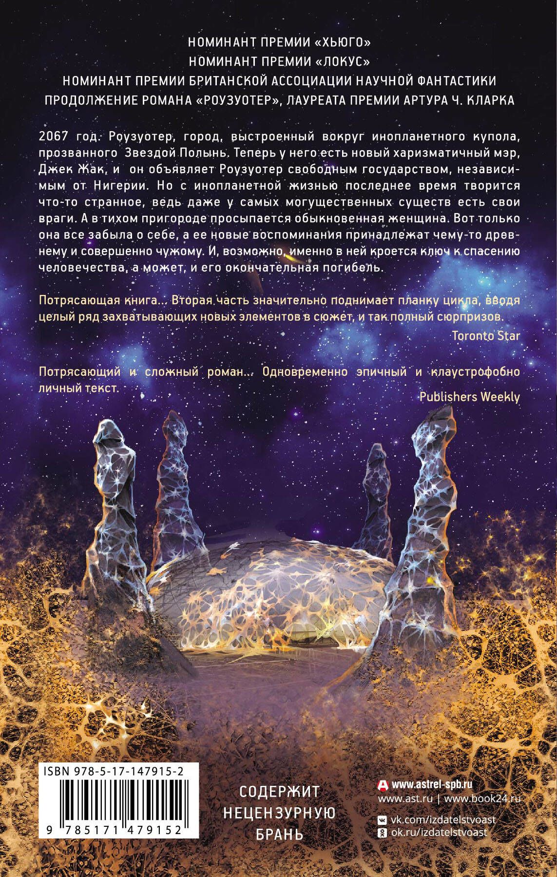 2067 год. Роузуотер, город, выстроенный вокруг инопланетного купола, прозванного Звездой Полынь. Теперь у него есть новый харизматичный мэр, Джек Жак, и он объявляет Роузуотер свободным государством, независимым от Нигерии. Но с инопланетной жизнью последнее время творится что-то странное, ведь даже у самых могущественных существ есть свои враги. А в тихом пригороде проcыпается обыкновенная женщина. Вот только она все забыла о себе, а ее новые воспоминания принадлежат чему-то древнему и совершенно чужому. И возможно именно в ней кроется ключ к спасению человечества, а может, и его окончательная погибель.