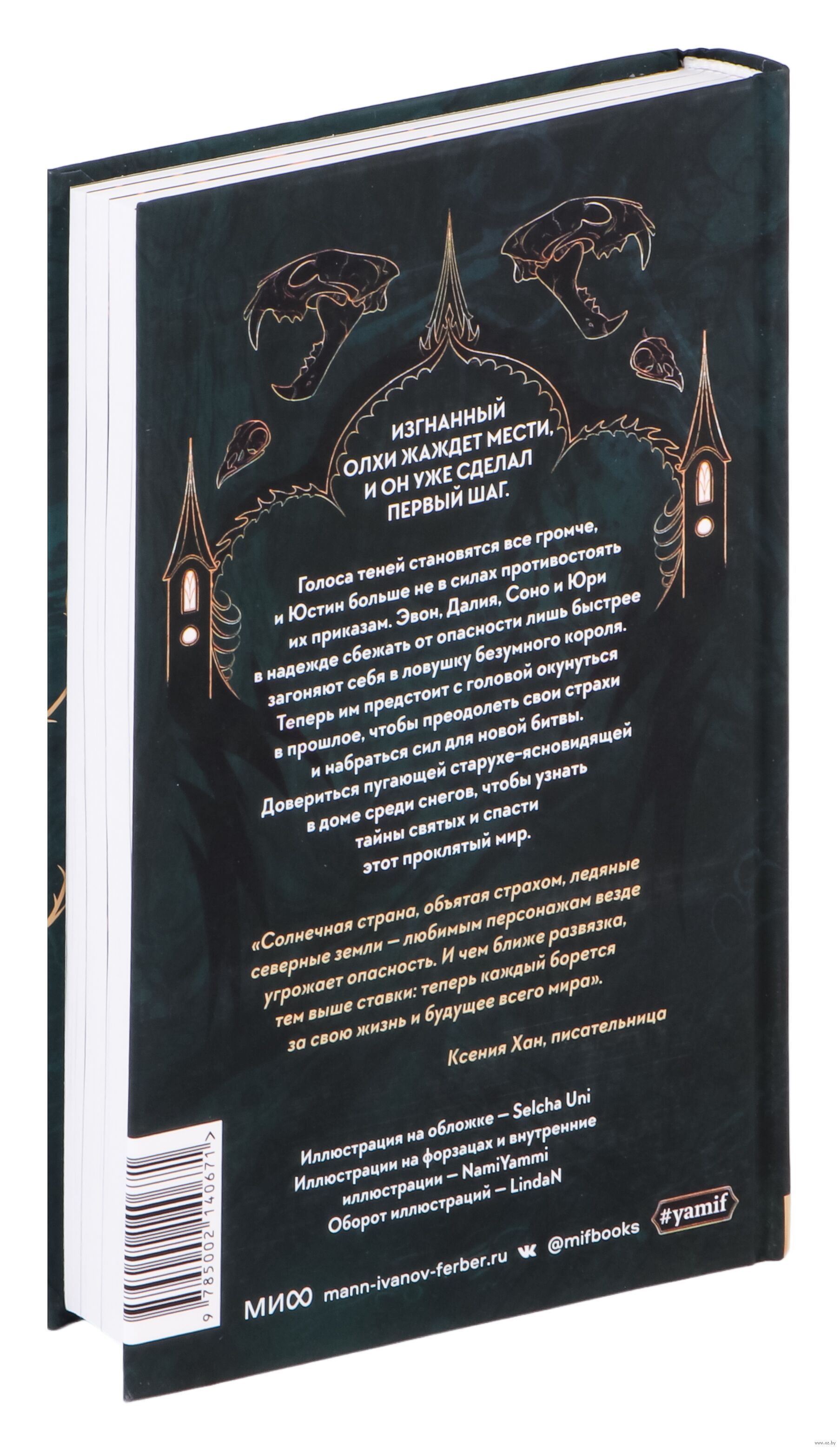 Голоса теней становятся всё громче, и Юстин уже не в силах противостоять их приказам. Эвон, Далия, Соно и Юри, в надежде сбежать от опасности, лишь быстрее загоняют себя в ловушку безумного короля. Теперь им предстоит с головой окунуться в прошлое, чтобы преодолеть свои страхи и набраться сил для новой битвы. Довериться пугающей старухе-ясновидящей в доме среди снегов, чтобы узнать тайны святых и спасти этот проклятый мир.
