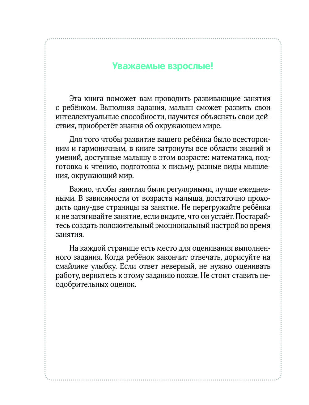 Эта книга станет лучшим помощником при подготовке ребёнка к школе. Занимаясь всего по 10 минут в день, ваш малыш получит необходимые знания и навыки. Комплекс упражнений охватывает основные направления обучения: грамоту, математику, письмо, развитие речи, логику и другое.