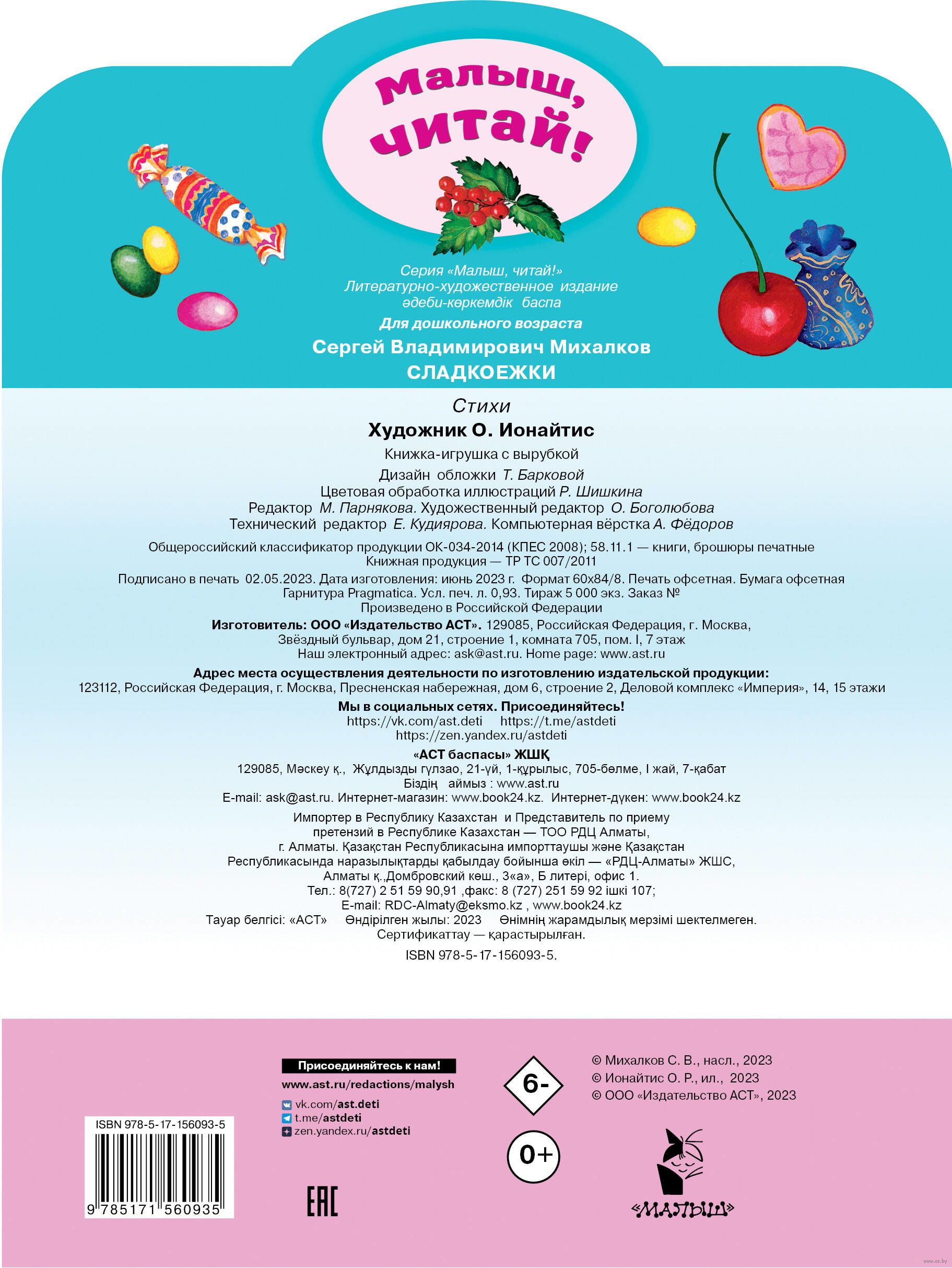Большая книжка С. Михалкова для маленьких сладкоежек! Прочитайте стихотворение "Сладкоежки" с великолепными иллюстрациями О. Ионайтис и съешьте что-нибудь вкусненькое!