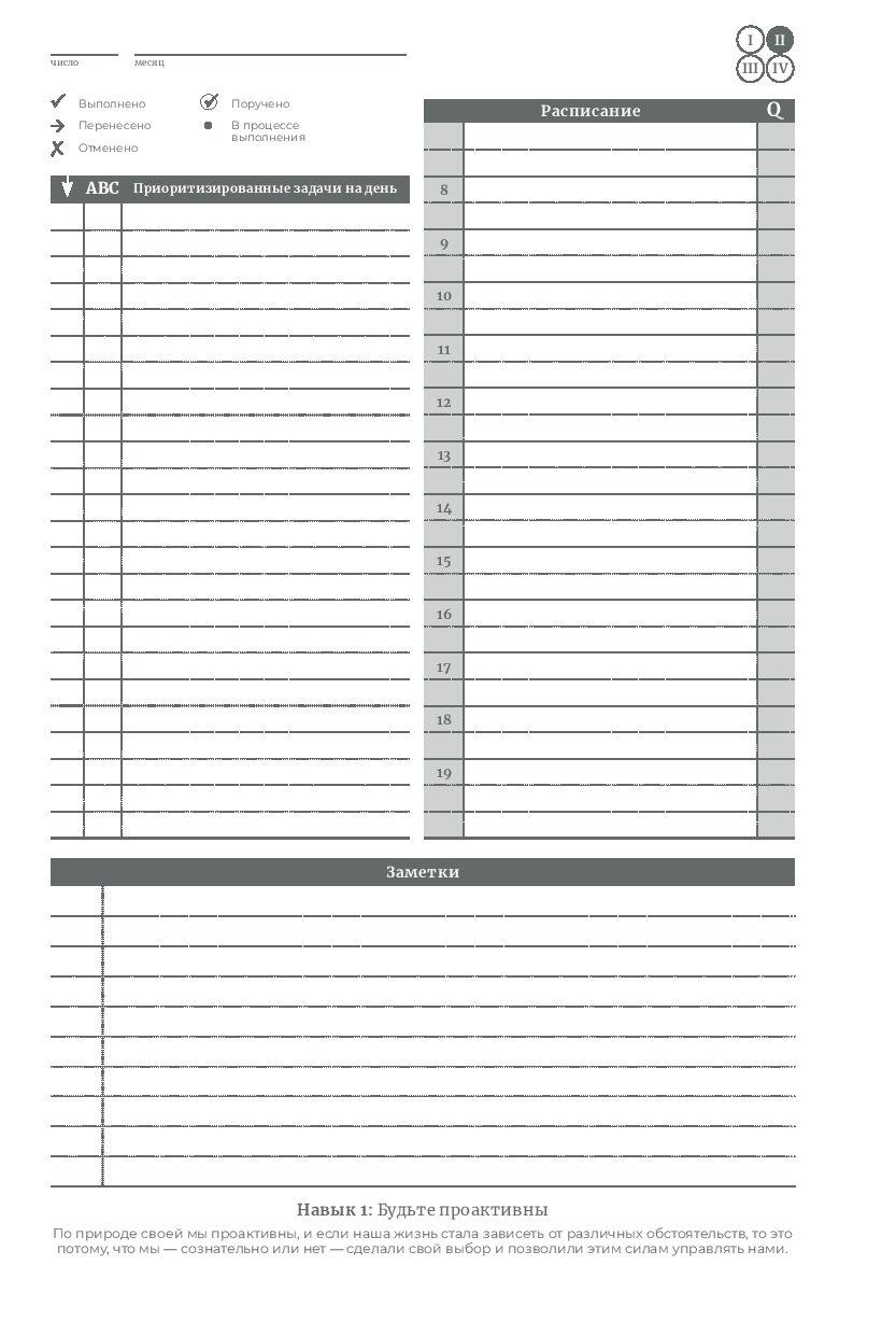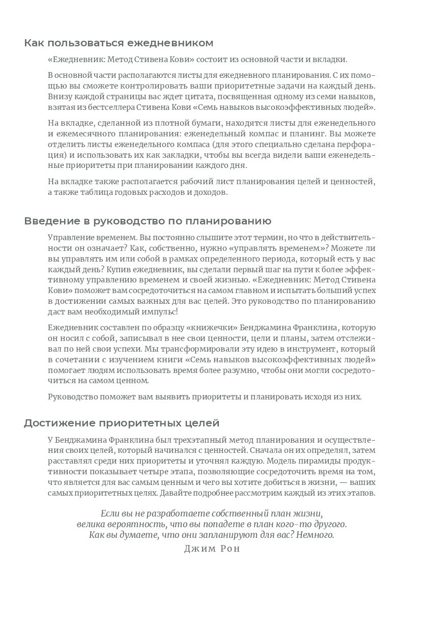 "Ежедневник. Метод Стивена Кови" – ваш способ применять семь навыков каждый день. Это прикладное использование техник, описанных в международном супербестселлере "Семь навыков высокоэффективных людей".