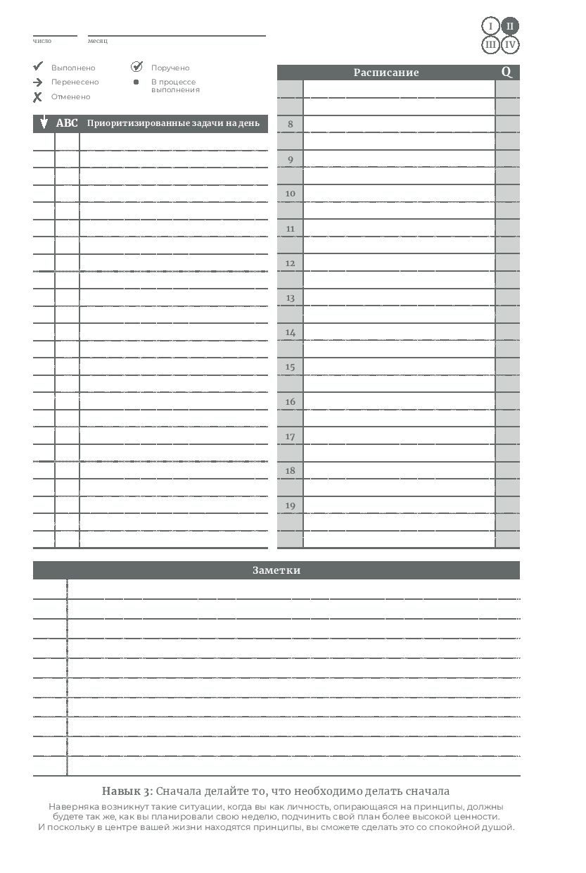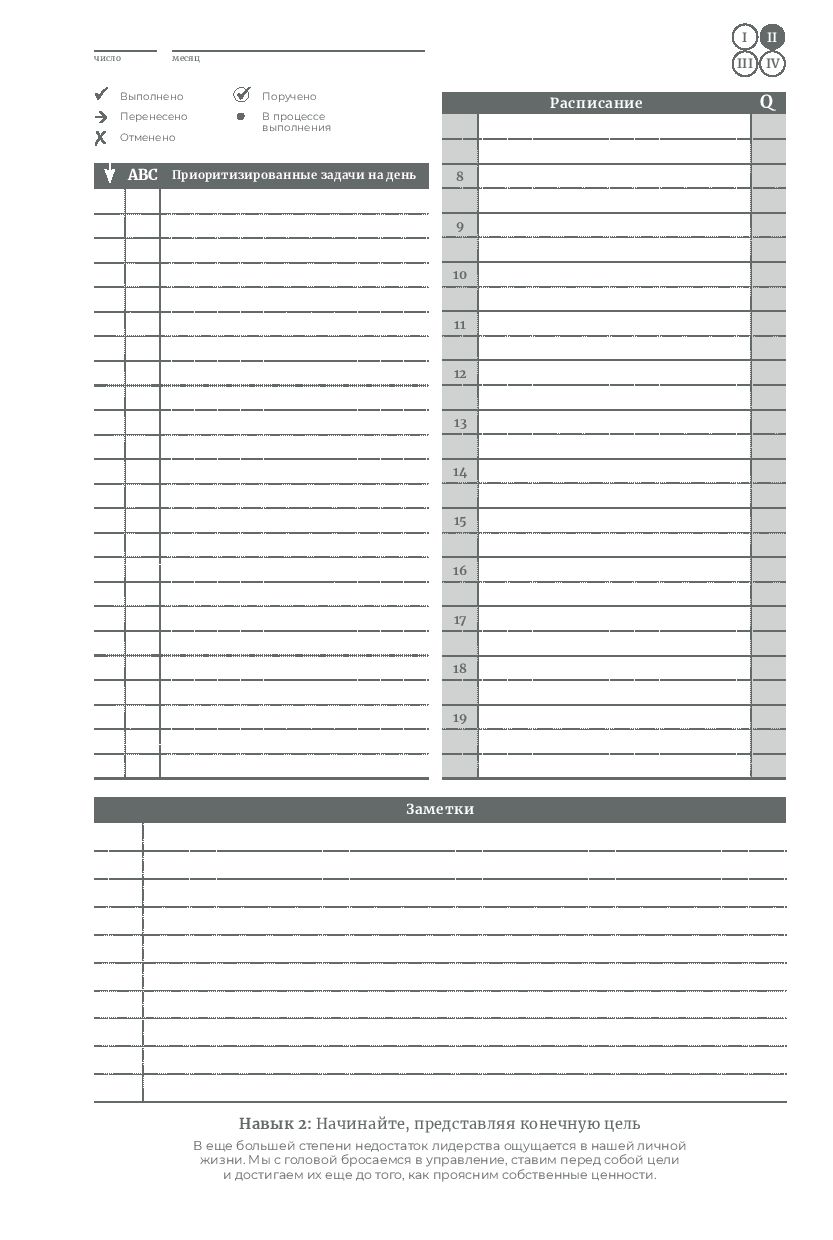 Ежедневник поможет вам сосредоточиться на главном и достичь успеха в самых важных для вас сферах. Это инструмент, который поможет использовать время более разумно, чтобы вы могли сфокусироваться на самом ценном.