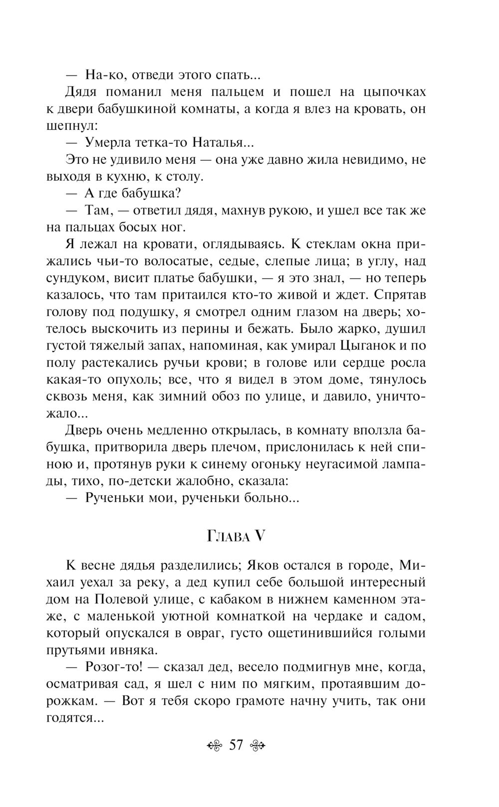 Русский писатель, мыслитель и пятикратный номинант на Нобелевскую премию Максим Горький до того, как посвятил жизнь литературе, провел много времени, путешествуя по Российской Империи. Он рано осиротел и вырос в доме, где царила враждебная атмосфера. Бабушка старалась всячески окружить его любовью и заботой, но никогда не смела перечить мужу-тирану. Дедушка воспитывал внука по старинке и поколачивал всю семью. Пережитые в детстве страдания оставили неизгладимый след в душе писателя и легли в основу автобиографической трилогии "Детство. В людях. Мои университеты", где он рассказывает о взрослении и первых разочарованиях.
