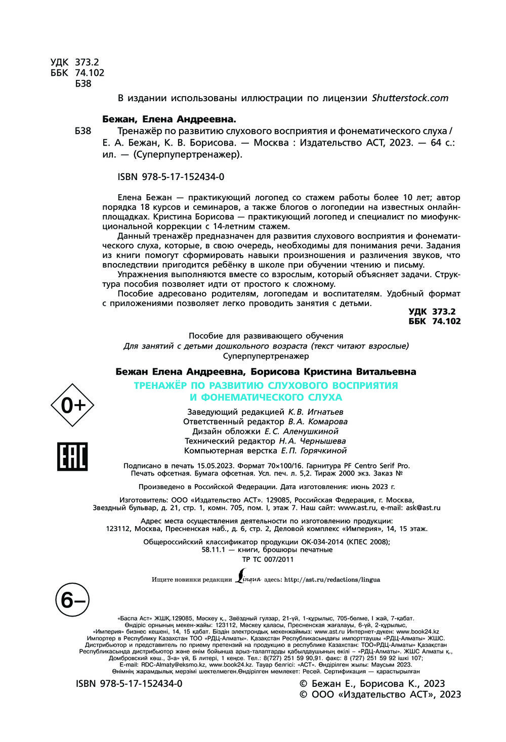 Данный тренажёр предназначен для развития слухового восприятия и фонематического слуха, которые, в свою очередь, необходимы для понимания речи. Задания из книги помогут сформировать навыки произношения и различения звуков, что впоследствии пригодится ребёнку в школе при обучении чтению и письму.