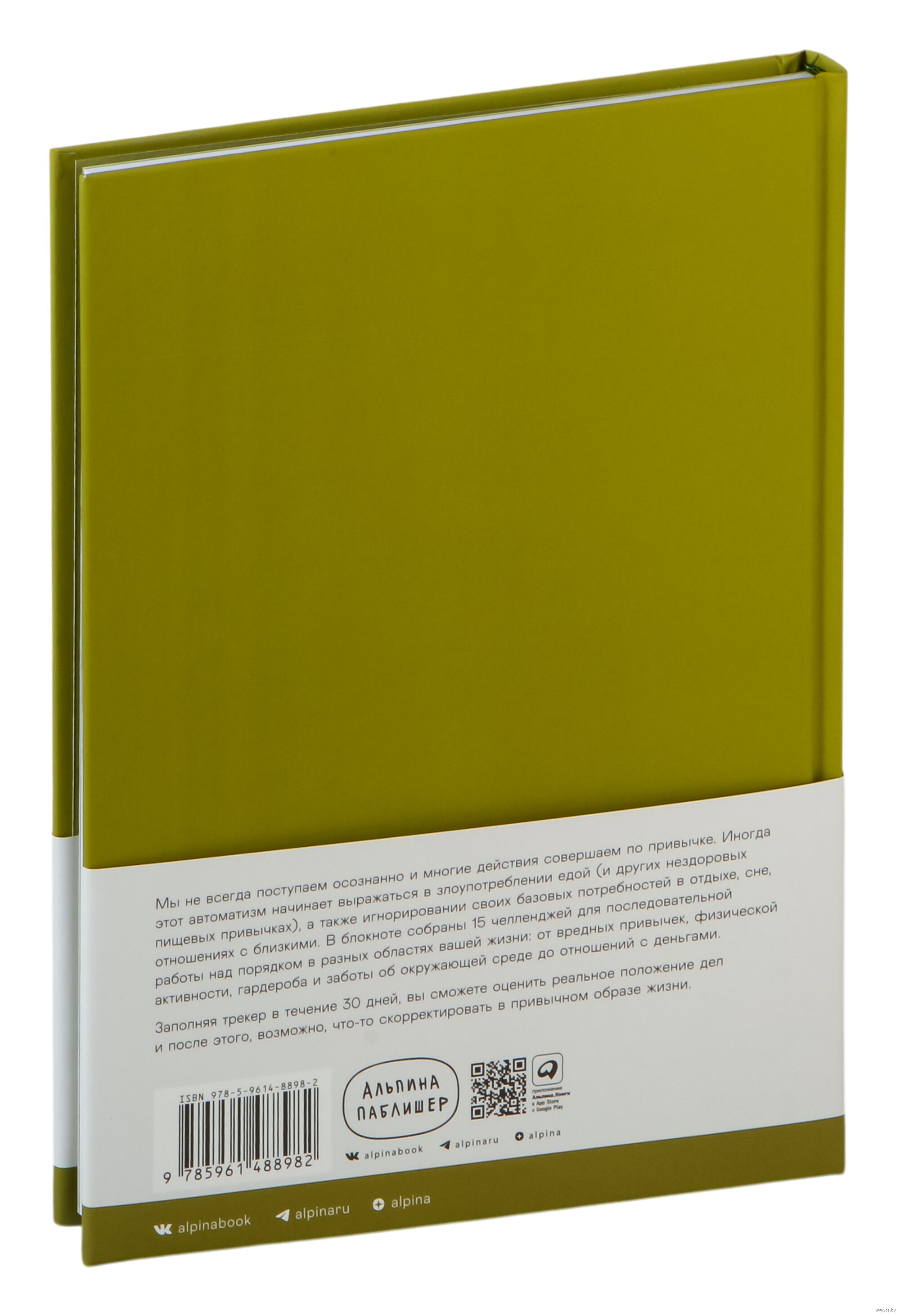 Мы не всегда действуем осознанно и многие действия совершаем по привычке. Иногда этот автоматизм начинает выражаться в каких-то нездоровых привычках, в игнорировании базовых потребностей в отдыхе, сне, близких отношениях. Если это все про вас, то вам пригодится "Challenge book". Вы сможете оценить реальное положение дел, сделать выводы и что-то скорректировать в привычном образе жизни.