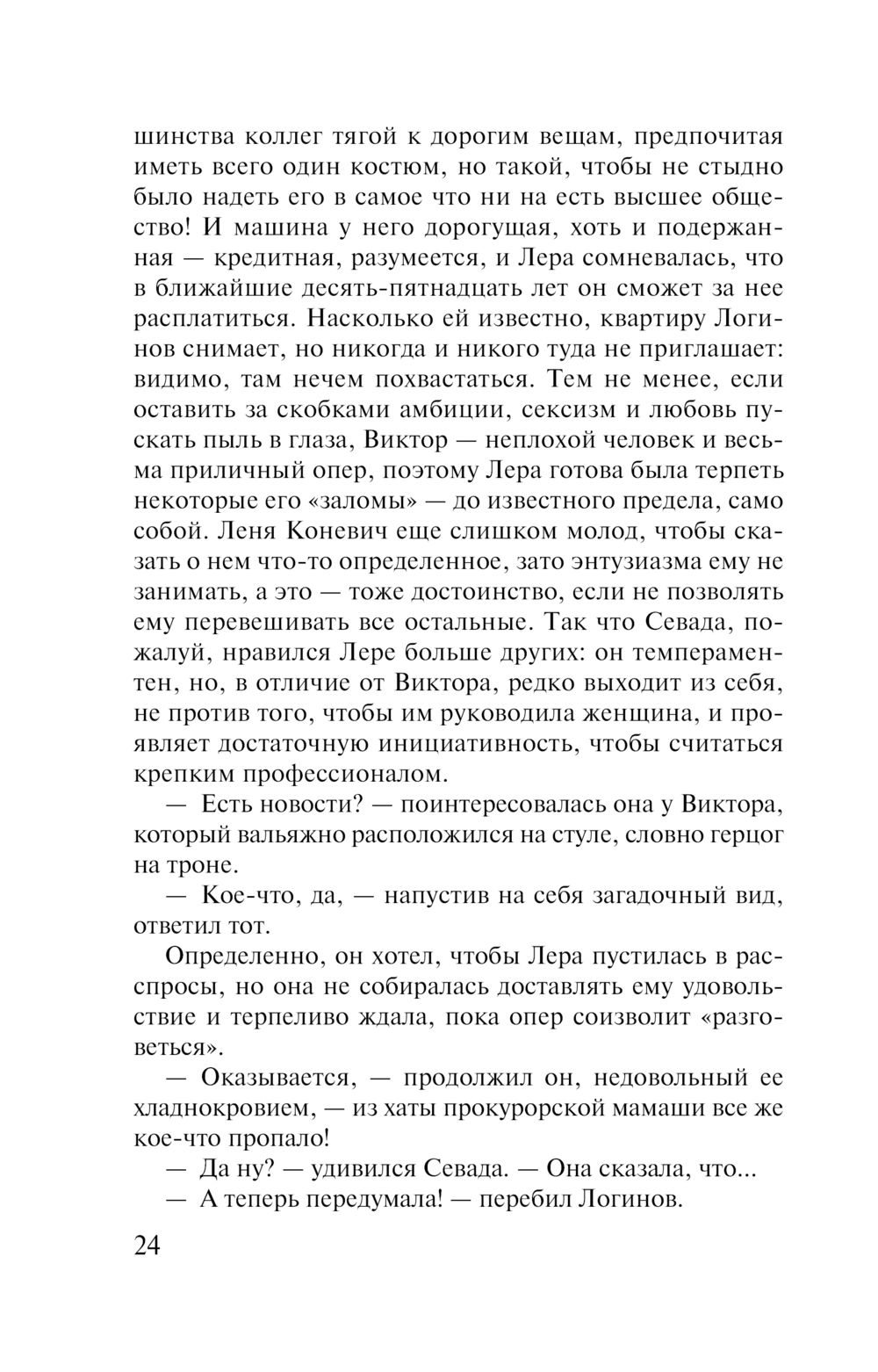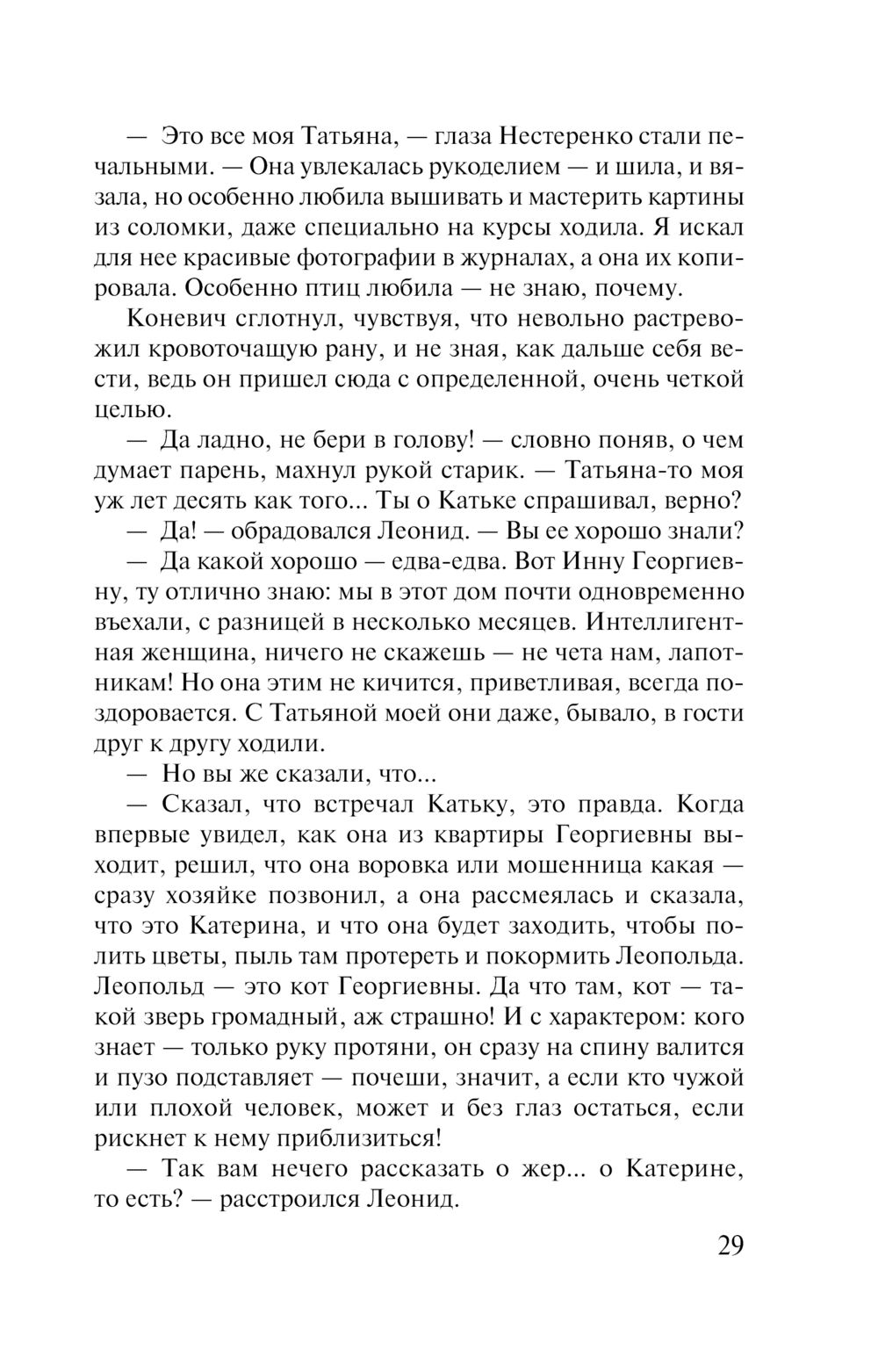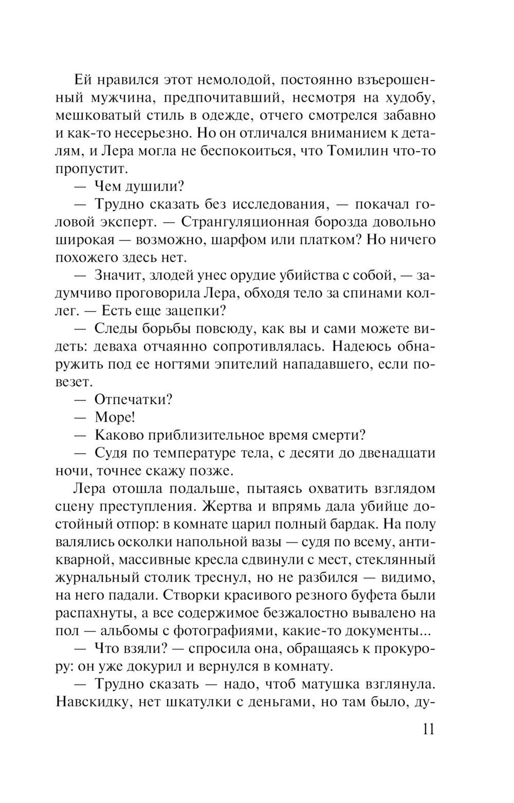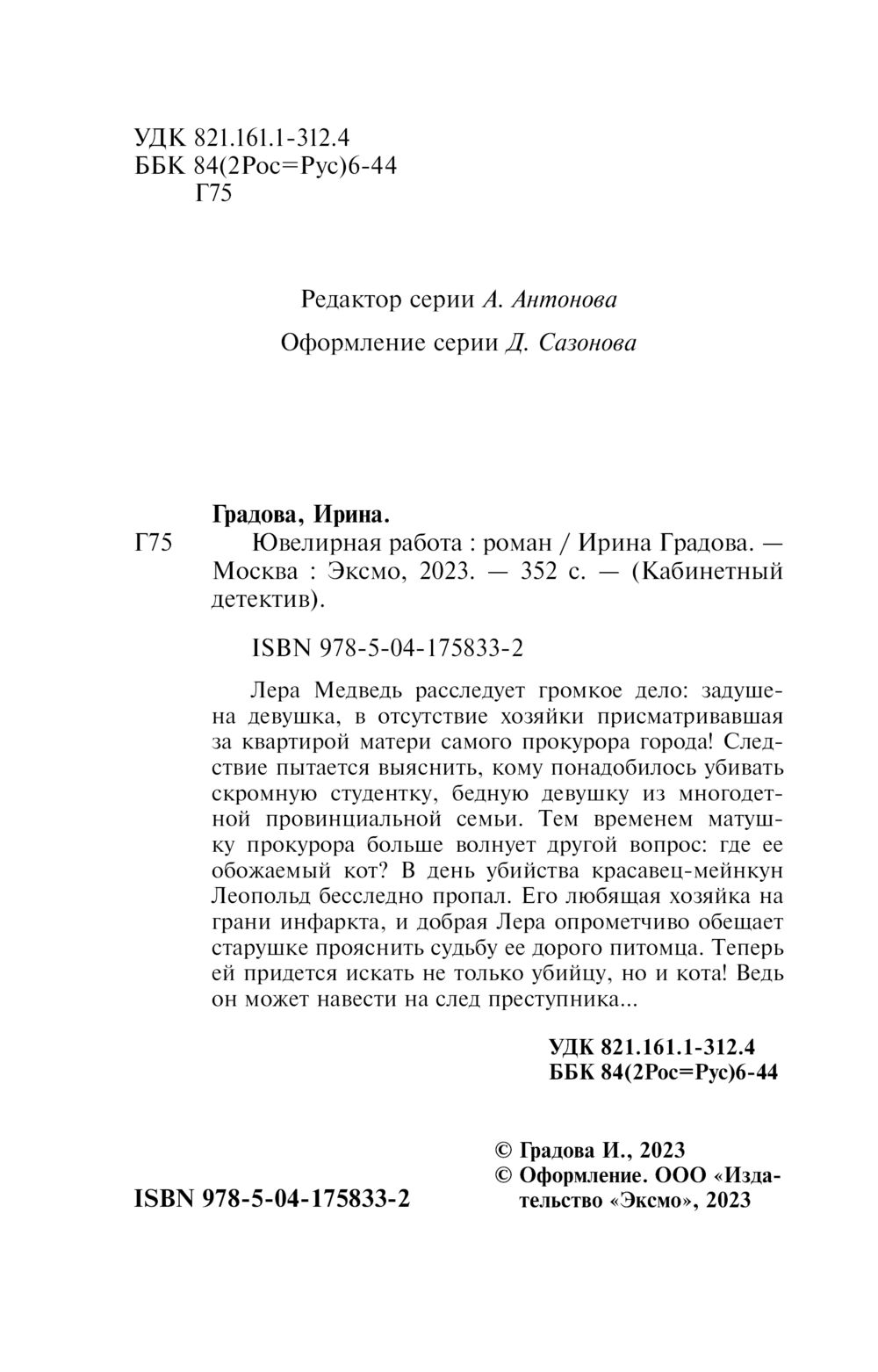 Лера Медведь расследует громкое дело: задушена девушка, в отсутствие хозяйки присматривавшая за квартирой матери самого прокурора города! Следствие пытается выяснить, кому понадобилось убивать скромную студентку, бедную девушку из многодетной провинциальной семьи. Тем временем матушку прокурора больше волнует другой вопрос: где ее обожаемый кот? В день убийства красавец-мейнкун Леопольд бесследно пропал. Его любящая хозяйка на грани инфаркта, и добрая Лера опрометчиво обещает старушке прояснить судьбу ее дорого питомца. Теперь ей придется искать не только убийцу, но и кота! Впрочем, Леопольд ведь может оказаться важным свидетелем – он был на месте преступления! Но какой помощи следствию можно ожидать от неразумного животного?..
