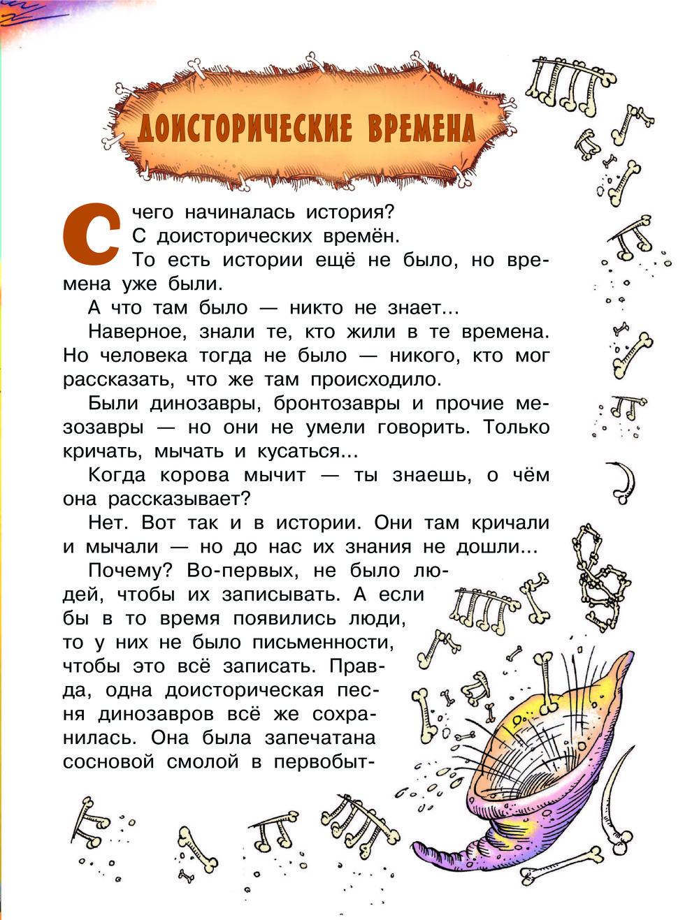 Эта весёлая и невероятно увлекательная книга расскажет о древних-древних временах, когда наша планета была совсем ещё молоденькой и по ней бродили динозавры, а потом... Потом на ней появились первобытные люди! Они охотились на мамонтов, изобретали письменность и счёт, первые виды спорта, первобытную моду, первобытную музыку и даже стихи. Хи-хи!