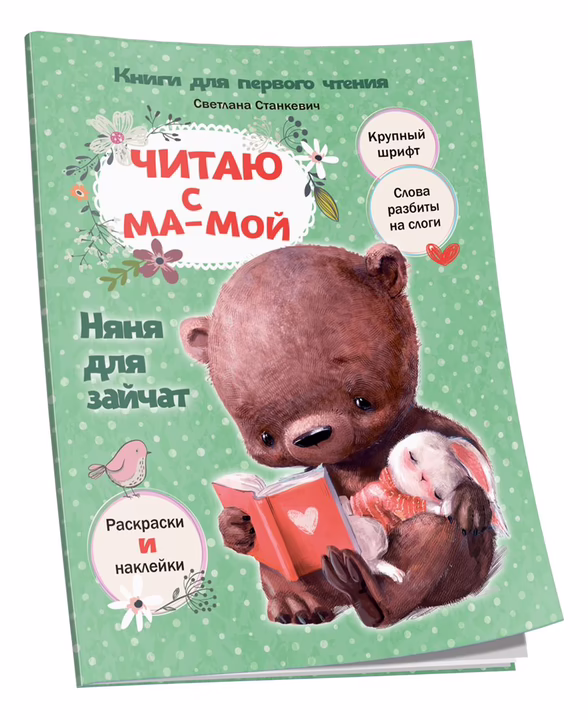 Книги этой серии прекрасно подойдут детям для первого чтения. Ребёнок не будет уставать, ведь читать предстоит вместе с мамой. Истории в книге поделены на фрагменты – для мамы и для начинающего читателя. Отрывки для малыша напечатаны крупным шрифтом и содержат простые слова, разбитые на слоги. Так ему будет удобнее водить пальчиком и соединять буквы в слова. А наклейки и раскраски превратят уроки чтения в увлекательную игру!