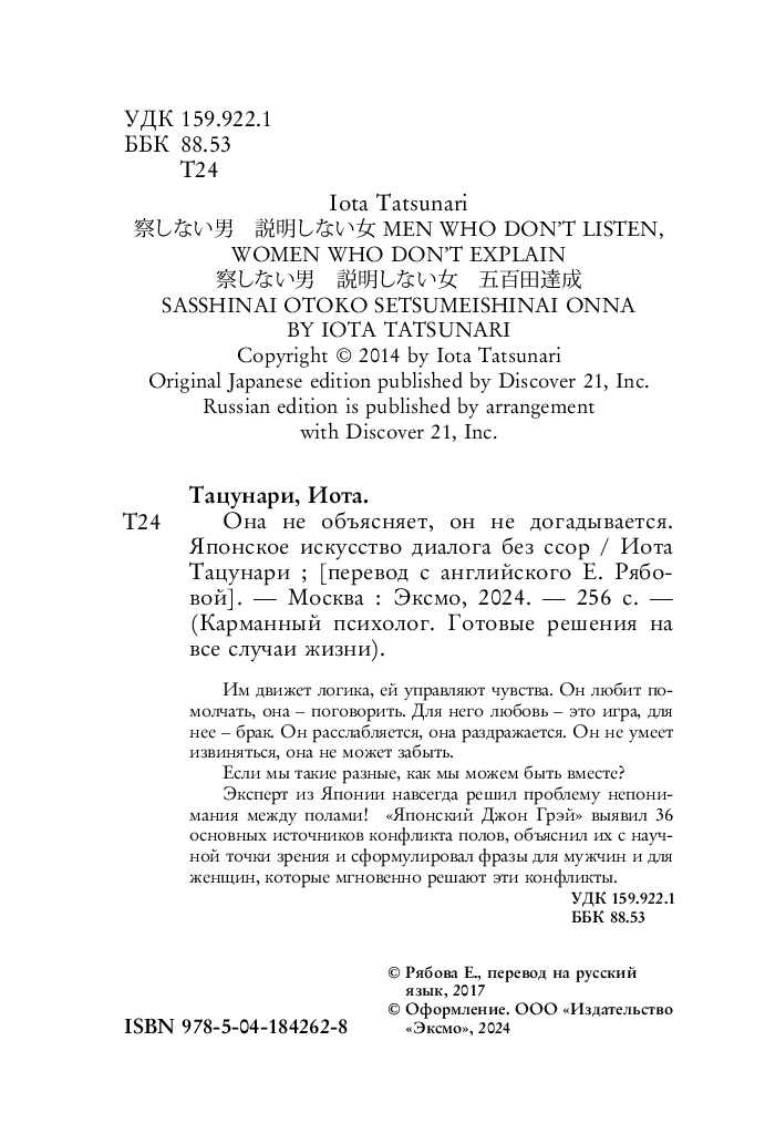 Эксперт из Японии навсегда решил проблему непонимания между полами! "Японский Джон Грэй" выявил 36 основных источников конфликта полов, объяснил их с научной точки зрения и сформулировал фразы для мужчин и для женщин, которые мгновенно решают эти конфликты.