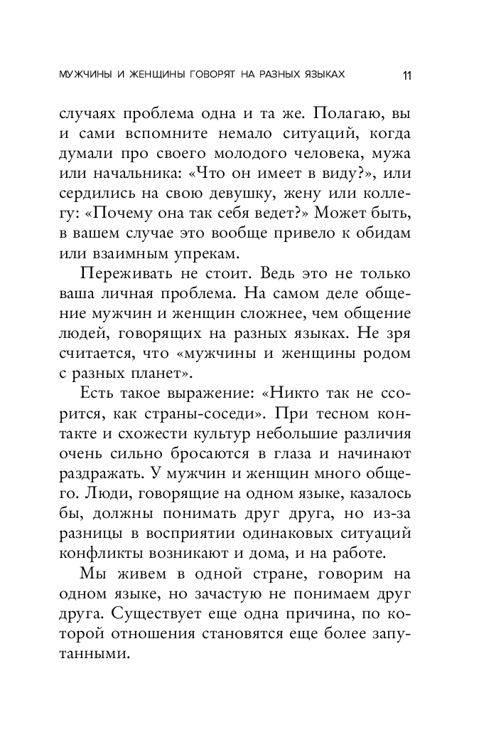 Им движет логика, ей управляют чувства. Он любит помолчать, она – поговорить. Для него любовь – это игра, для нее – брак. Он расслабляется, она раздражается. Он не умеет извиняться, она не может забыть.