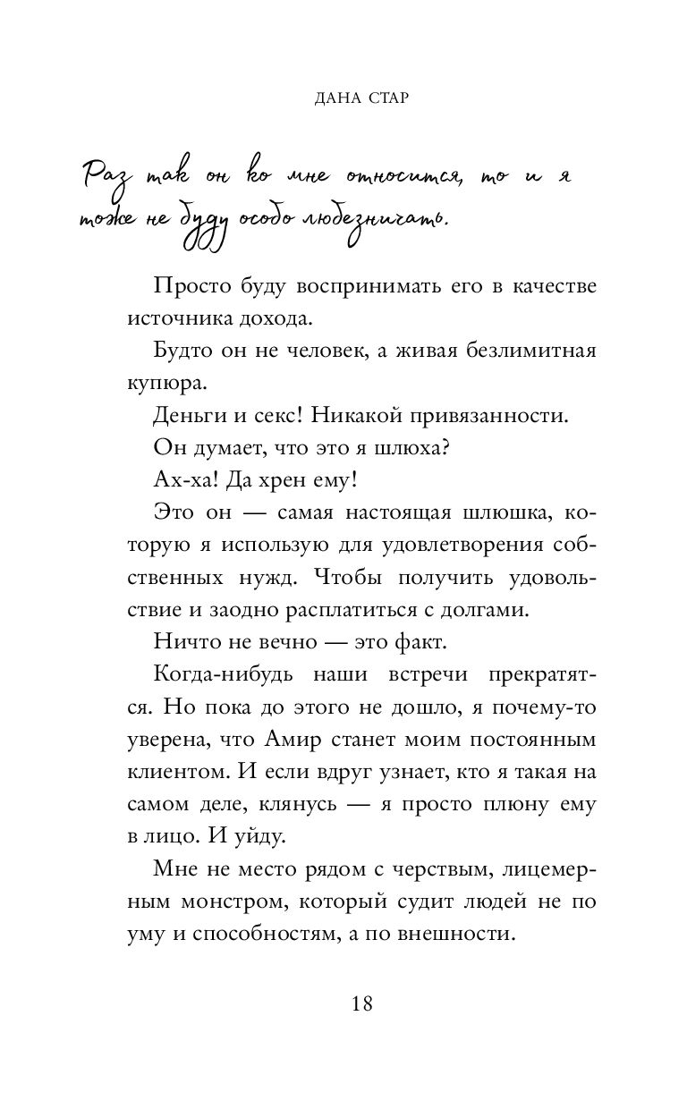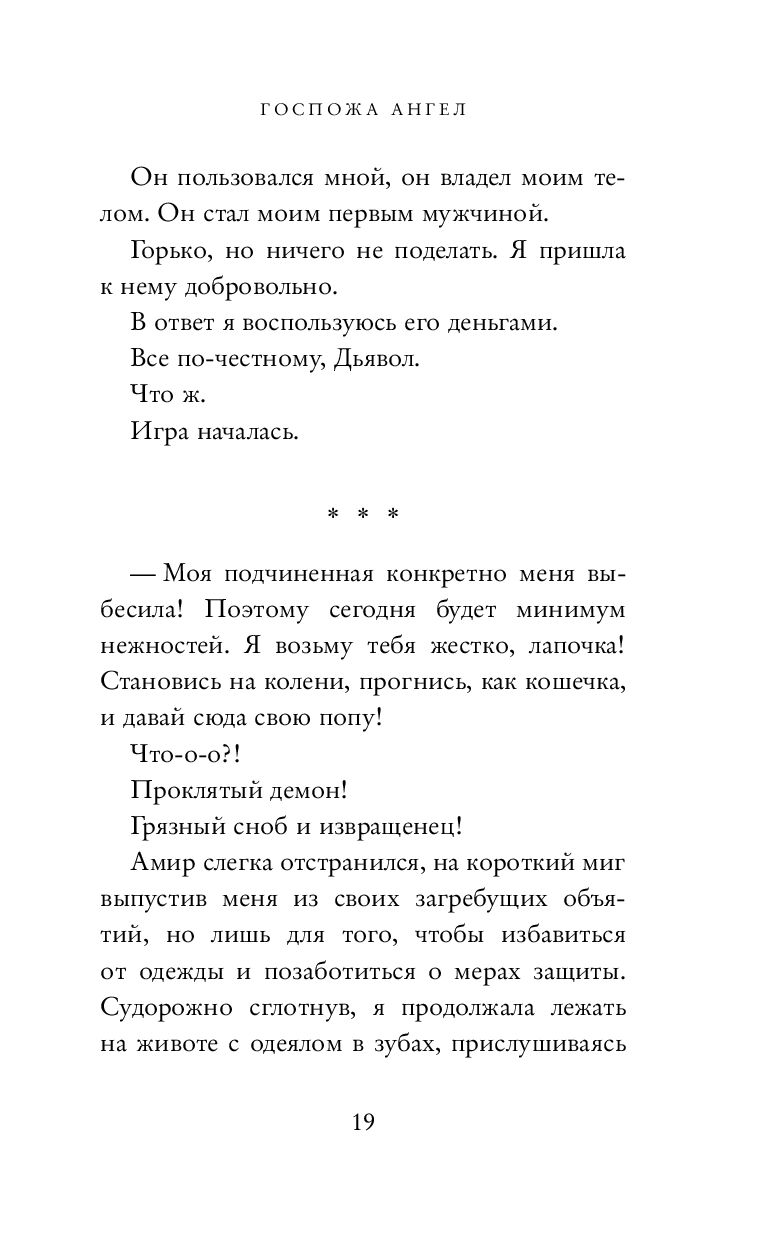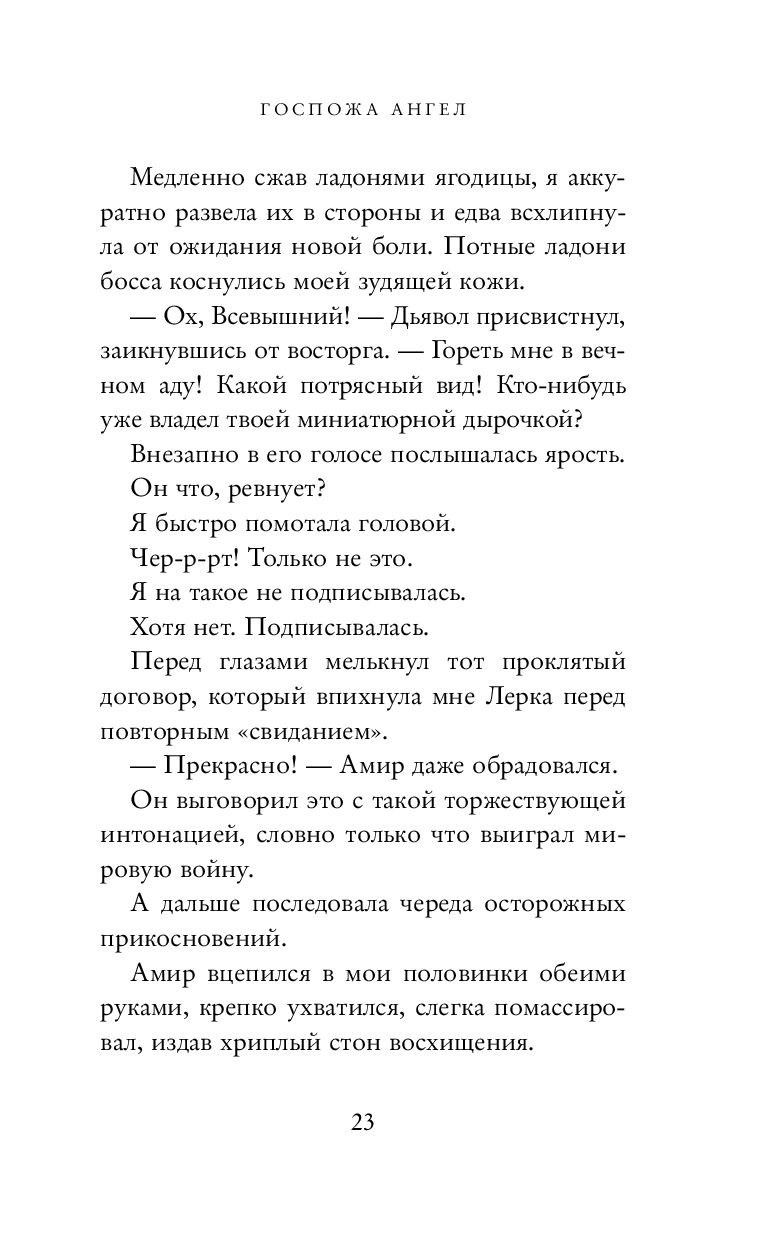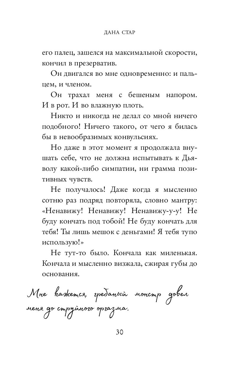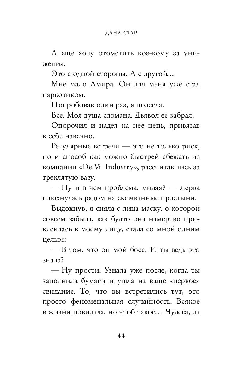 Меня зовут Марина и я веду двойную жизнь. Днем – офисная простушка, а ночью – развратная взрывчатка, ублажающая холеных мужчин в закрытом клубе для богачей. Мне очень нужны деньги. Я была вынуждена продать свое тело и душу сущему Дьяволу. А Дьявол кто? Это мой босс. Но он не знает, что горячая незнакомка из клуба и мышка-замухрышка на работе – это один и тот же человек.