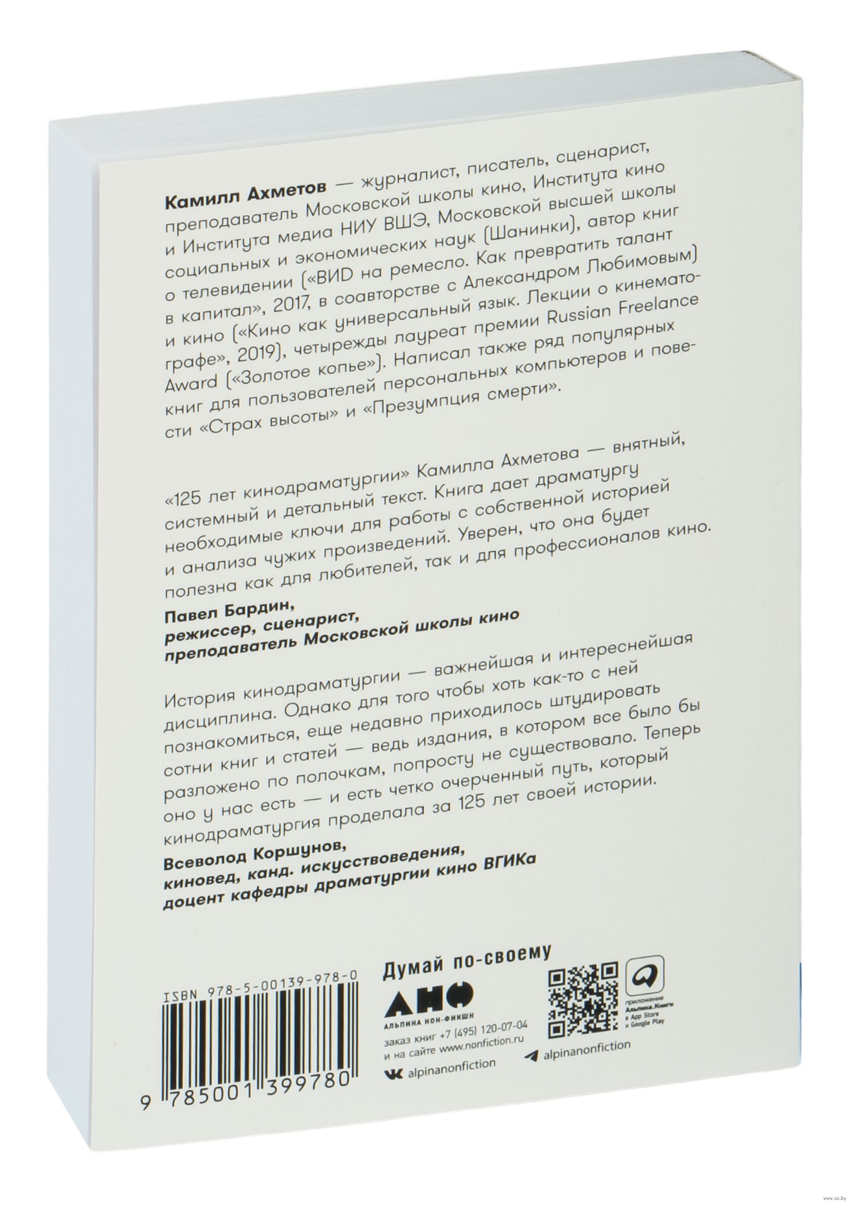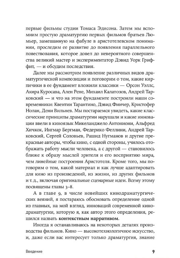 Новая книга о кинодраматургии от Камилла Ахметова выделяется на фоне традиционных работ по сценаристике тщательной систематизацией и историческим подходом. Развитие драматургической композиции – от традиционного линейного повествования до новаций XX и XXI веков – автор прослеживает на примерах работ Дэвида Уорка Гриффита, Льва Кулешова, Сергея Эйзенштейна, Орсона Уэллса, Акиры Куросавы, Алена Рене, Микеланджело Антониони, Альфреда Хичкока, Ингмара Бергмана, Федерико Феллини, Андрея Тарковского, Сергея Соловьева, Рашида Нугманова, Квентина Тарантино, Дэвида Финчера, Кристофера Нолана и других знаменитых кинематографистов.