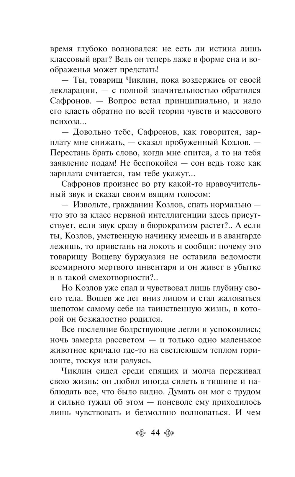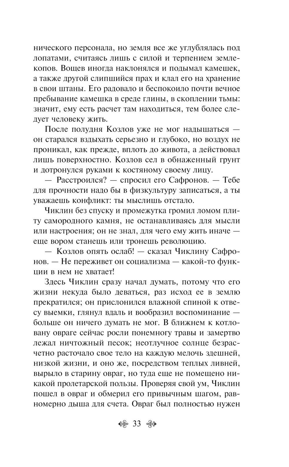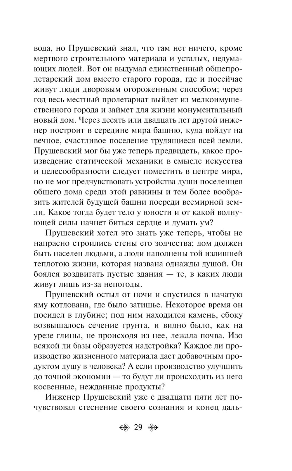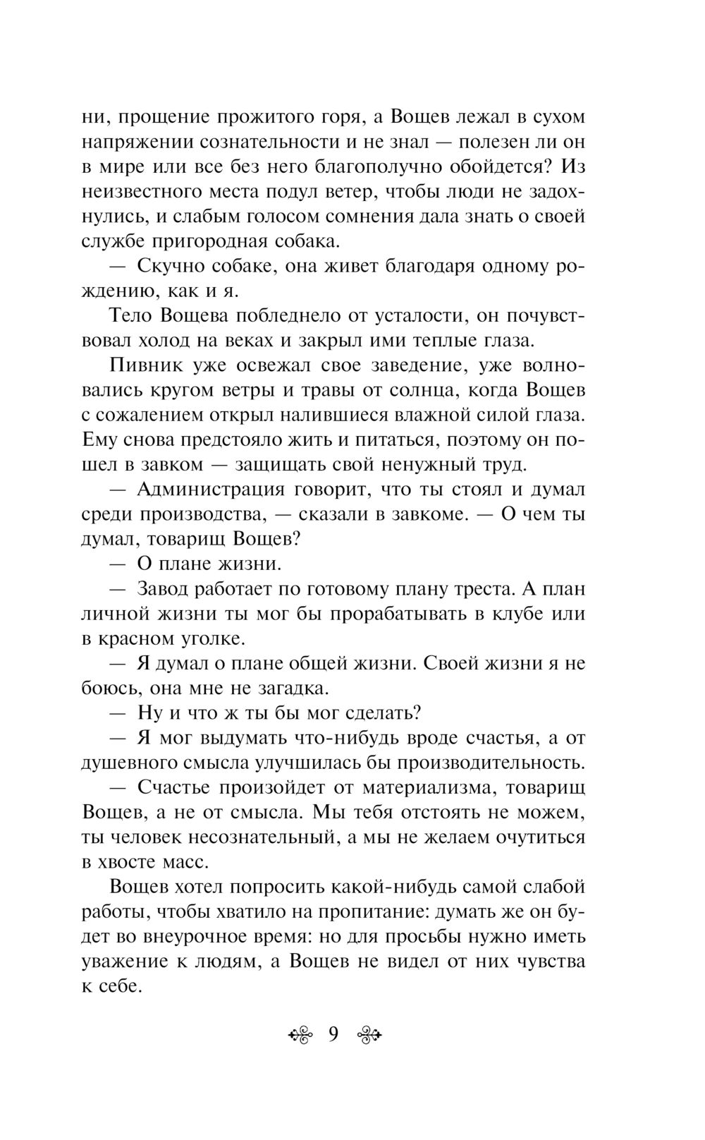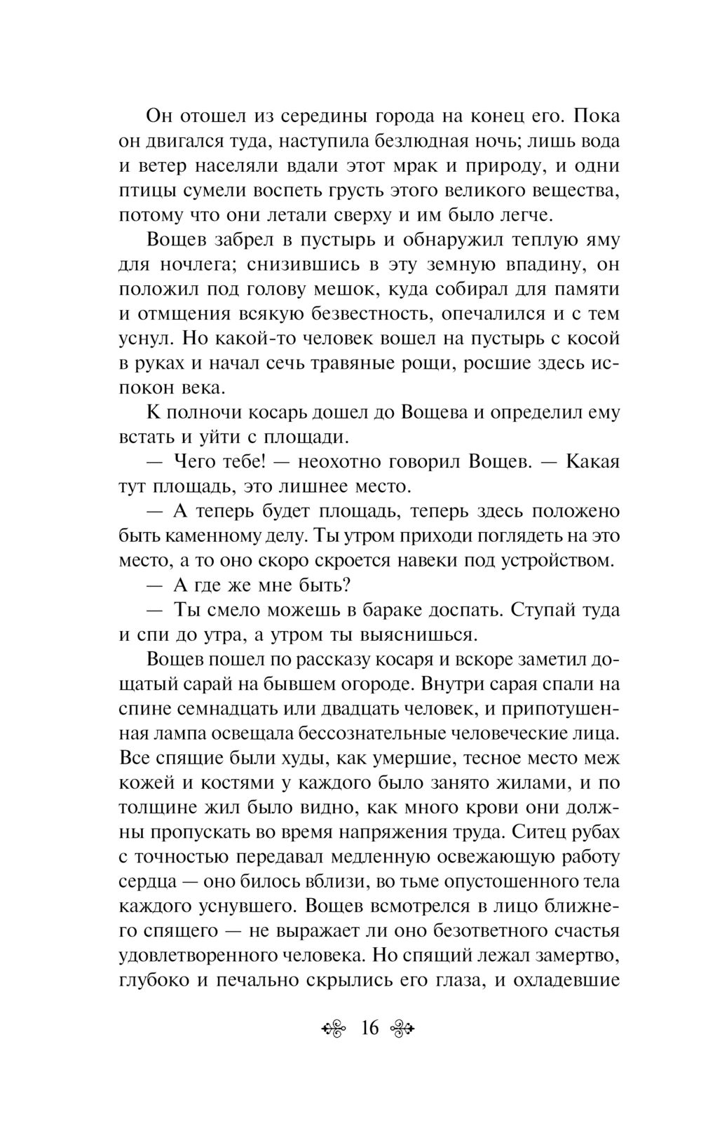 Тридцатилетнего рабочего Вощева увольняют с завода из-за "роста слабосильности в нем и задумчивости". Стремясь познать истину и узнать устройство мира, он попадает в соседний город на стройку "общепролетарского дома", который должен стать началом города "счастливого будущего".
