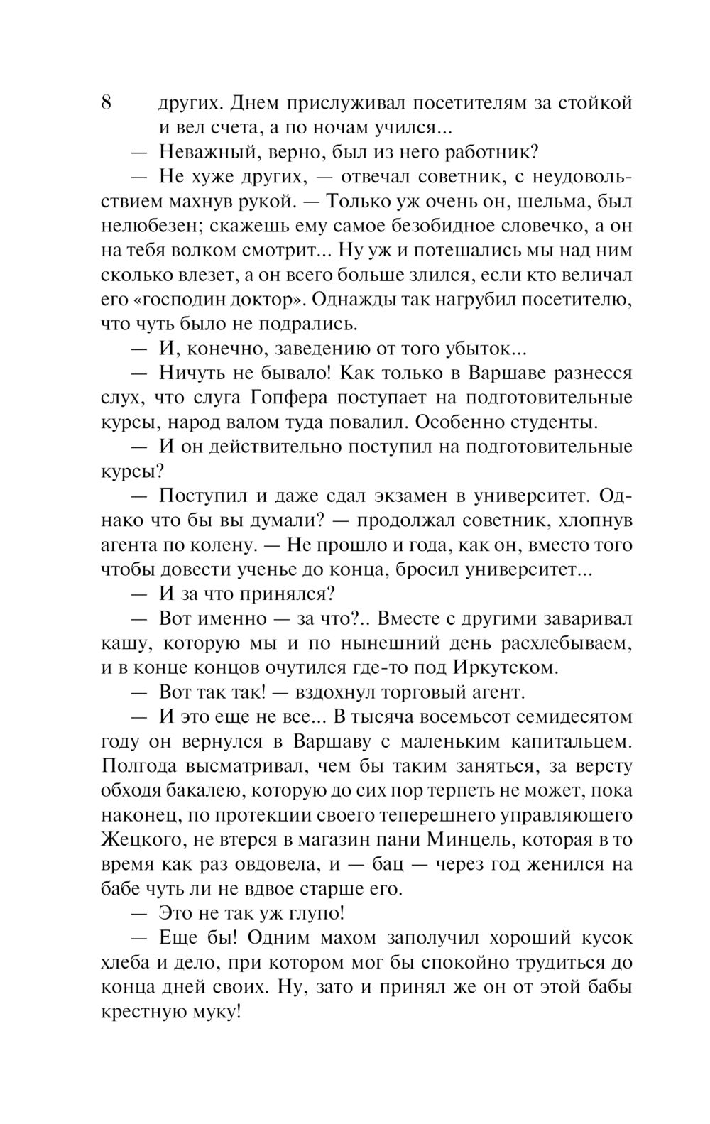 Станислав Вокульский – человек большой энергии и незаурядных способностей – всего в жизни добился своими силами, пройдя через нужду и лишения, стал крупным финансистом. Ради богатства и высокого положения в обществе он идет на компромисс с собственной совестью, изменяет своим идеалам и страдает из-за этого. А любовь к безумно красивой и столь же бездушной аристократке Изабелле Ленцкой лишь усугубляет его страдания.