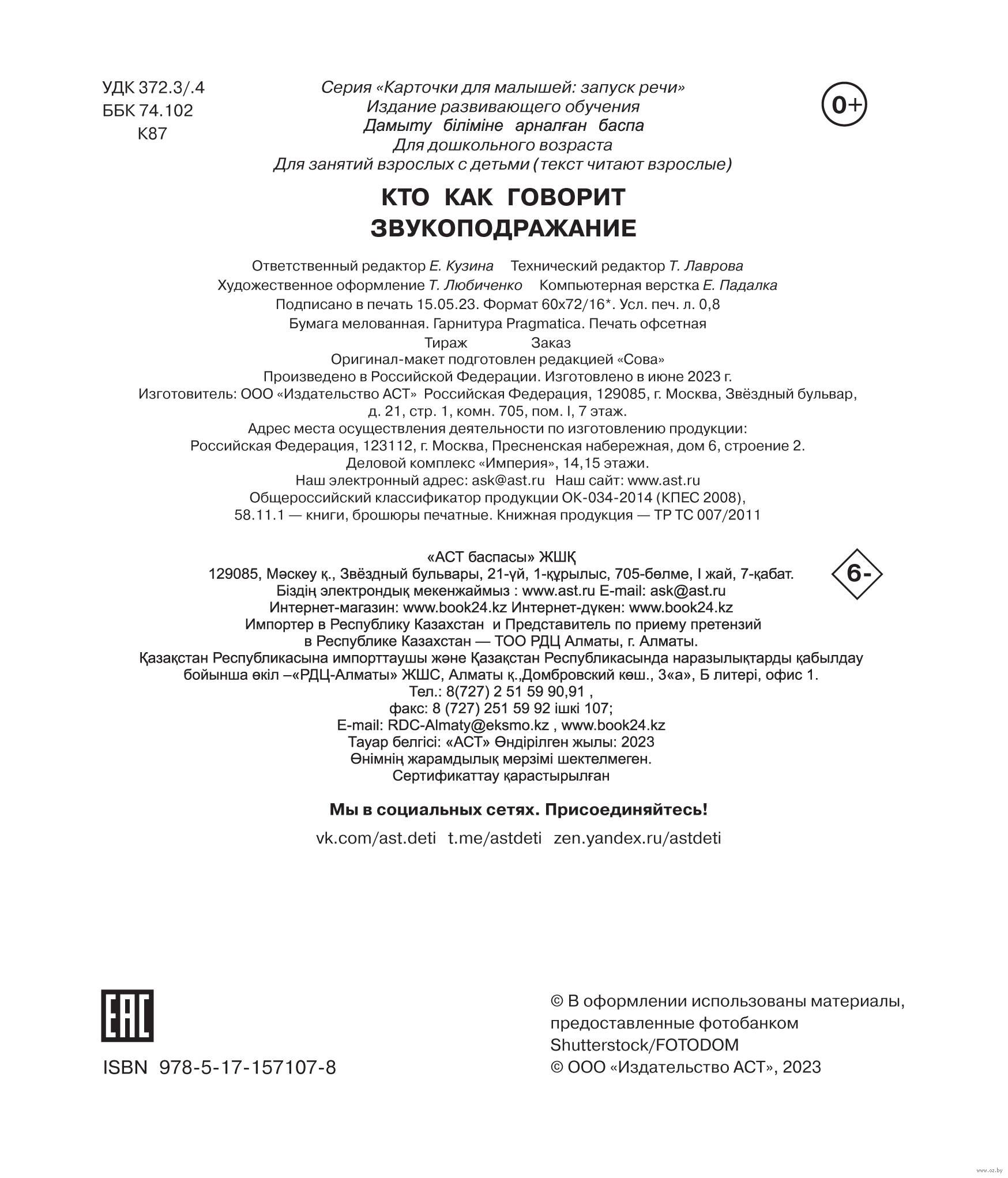 | Изготовитель | Творческое кооперативное объединение «АСТ». 129085, РФ, г. Москва, б-р Звездный, 21, стр. 1 |