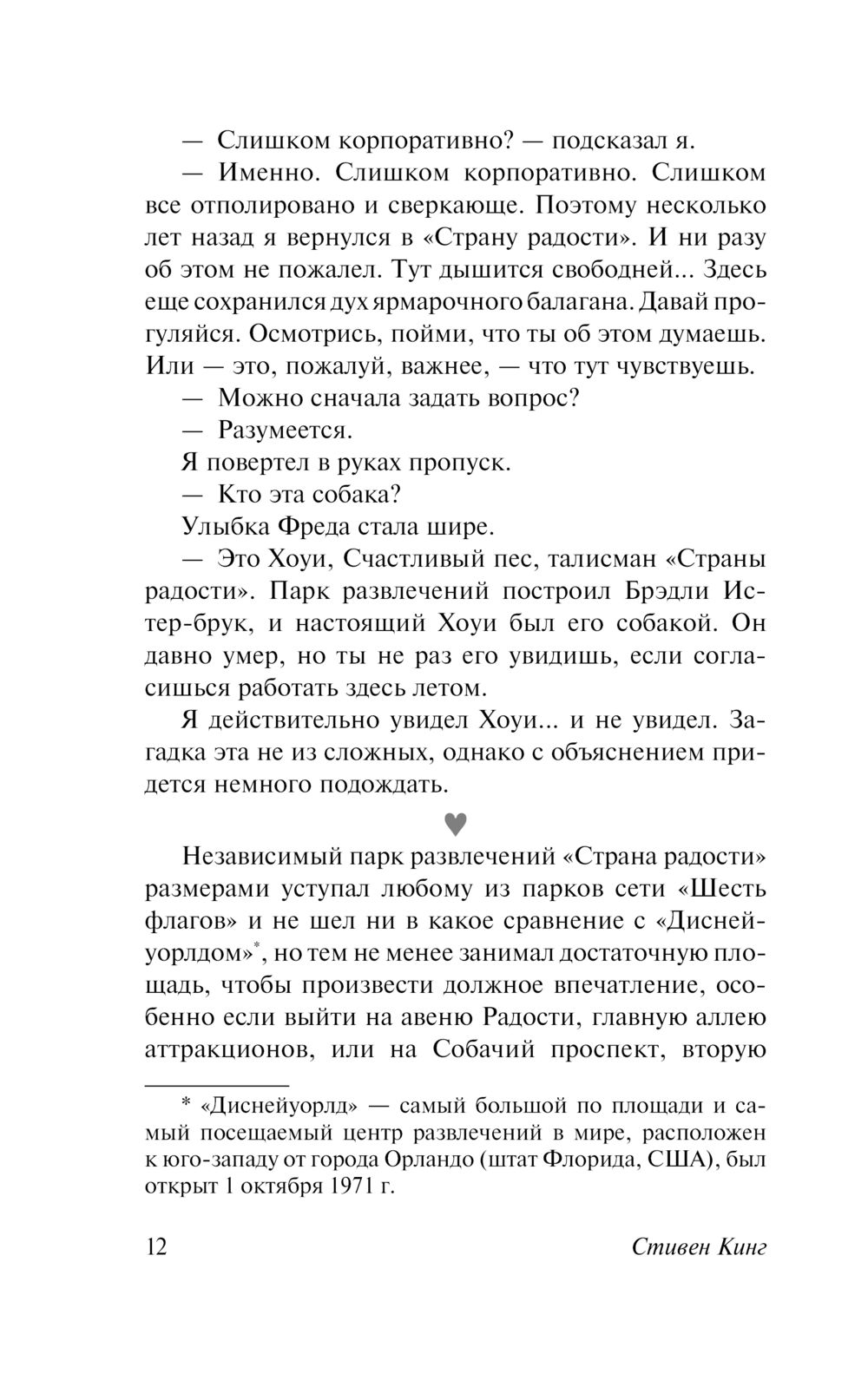 Пытаясь найти ответы на эти вопросы, Девин понимает: за ярким фасадом парка развлечений скрываются опасные тайны, а если разворошить прошлое обитателей "страны радости", то его собственная жизнь может непостижимым образом измениться раз и навсегда...