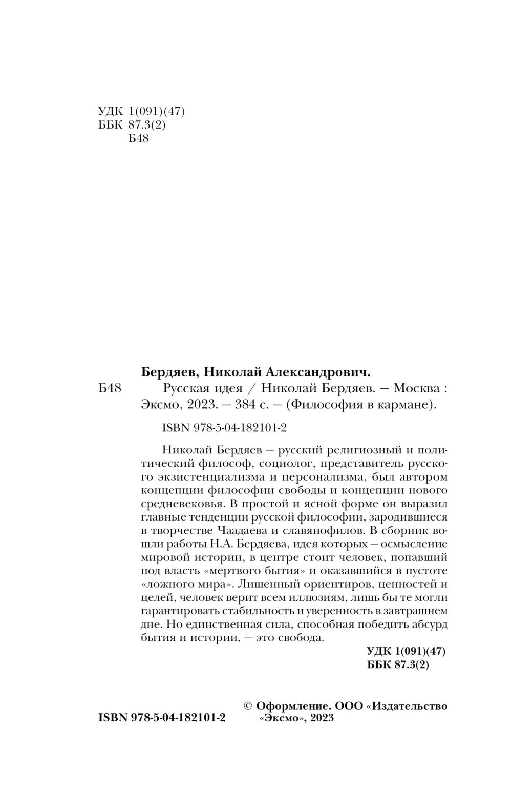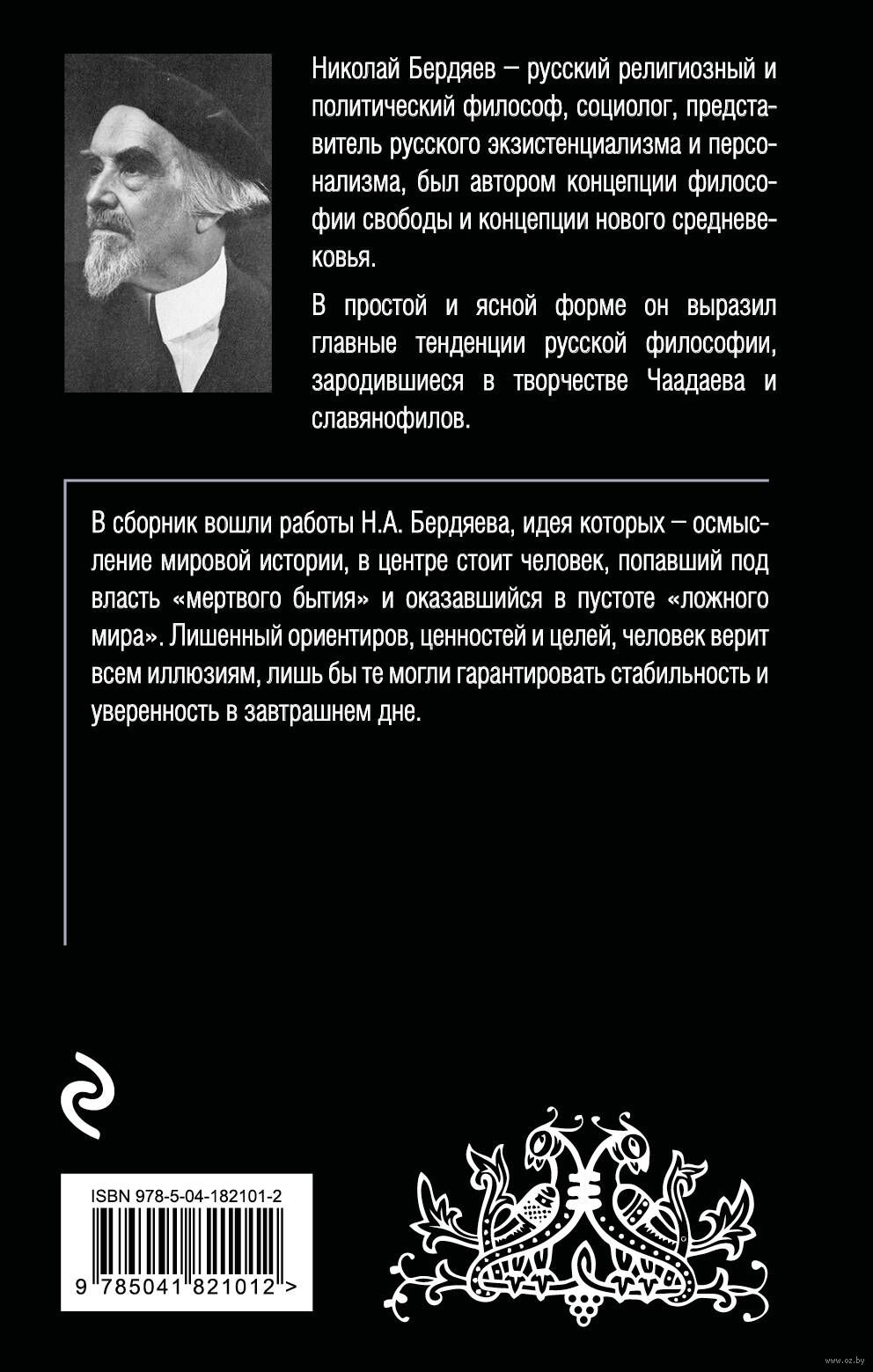В простой и ясной форме Николай Бердяев выразил главные тенденции русской философии, зародившиеся в творчестве Чаадаева и славянофилов. В сборник вошли работы Н.А. Бердяева, идея которых – осмысление мировой истории, в центре стоит человек, попавший под власть "мертвого бытия" и оказавшийся в пустоте "ложного мира".