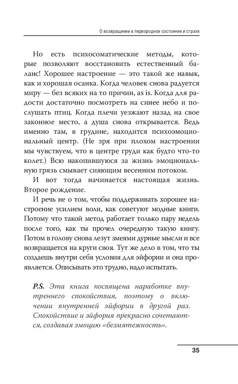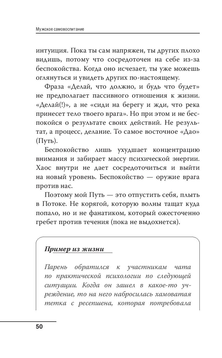 Это книга, которая охватывает широкий спектр тем, важных для любого, кто захотел повзрослеть. И не важно, сколько лет при этом физическому телу. Она предоставляет ценные советы о том, как эффективно управлять стрессом, разбираться в ролях в жизни, управлять своим эго, концентрироваться, выстраивать собственную систему ценностей.