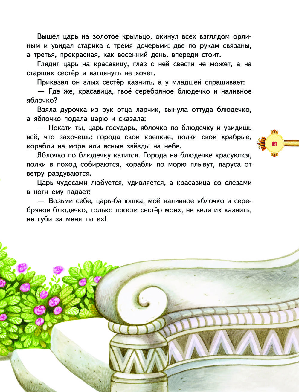 В книгу вошли сказки: "Царевна-лягушка", "Сказка о серебряном блюдечке и наливном яблочке", "Несмеяна-царевна" и другие. Каждая расскажет, что такое доброе сердце и настоящая мудрость. А любимые образы персонажей навсегда останутся в душе и станут подсказкой, что выбирать: вершки или корешки? И как поступать, чтобы лучшим спутником в дороге было Счастье.