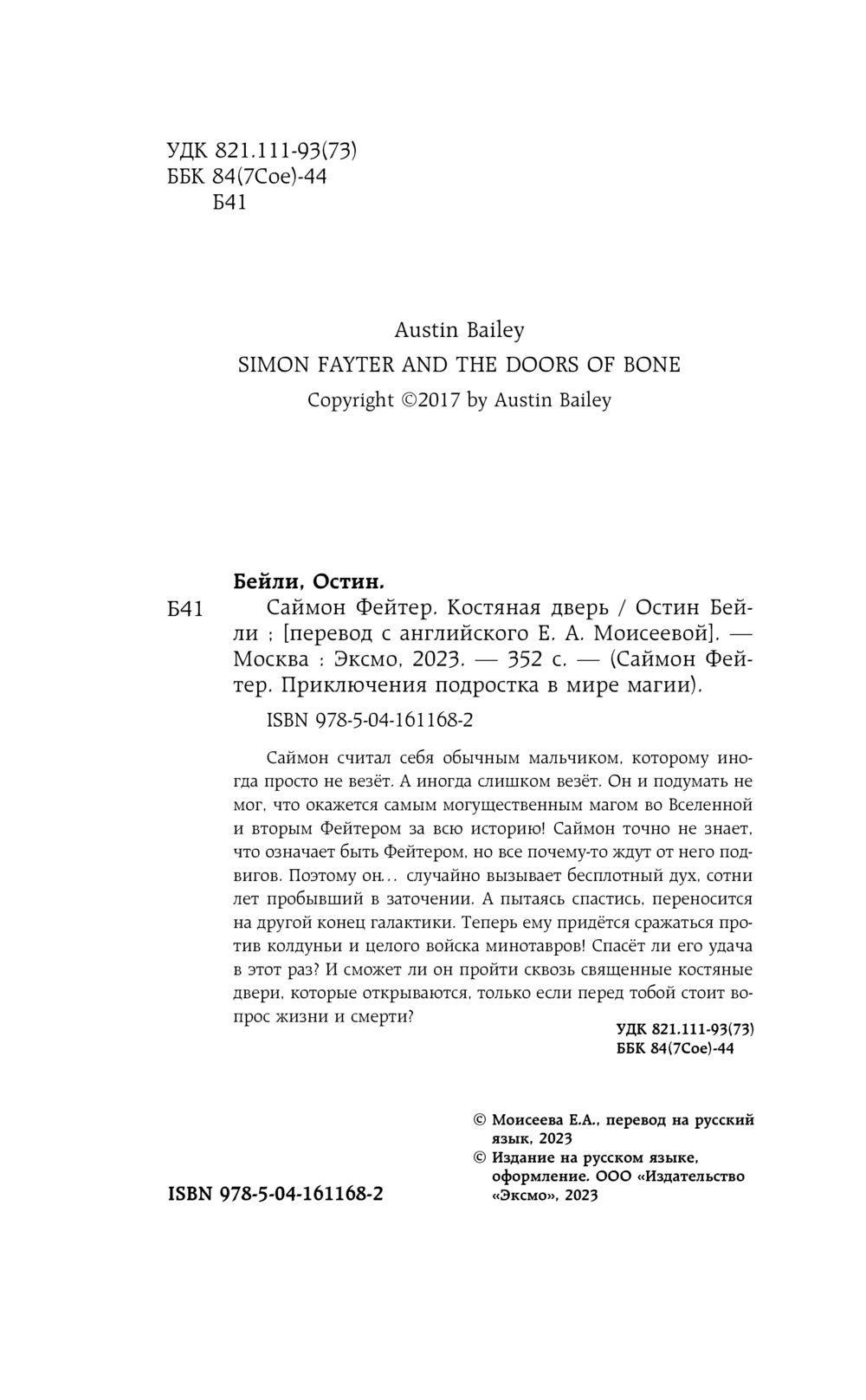 Условия бонусной программы| Название в оригинале | Simon Fayter and the Doors of Bone |