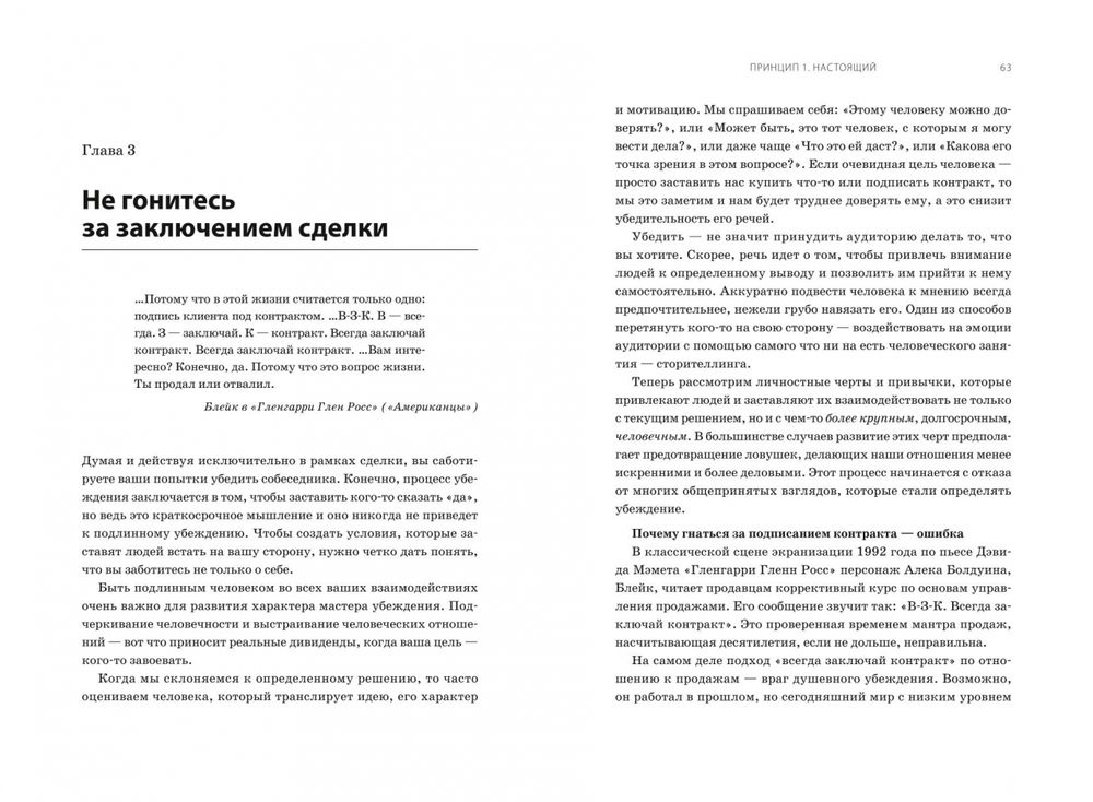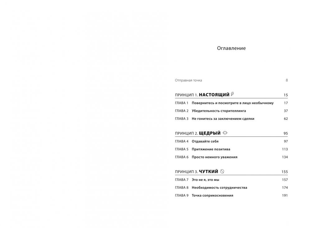 Современный и честный подход к переговорам. Ключ не в секретах и трюках, а в развитии личностных качеств. Благодаря описанным принципам вы научитесь чувствовать и по-настоящему понимать своего собеседника. Через синхронизацию душевного состояния сможете достигать истинного контакта и находить лучшее решение для обеих сторон.