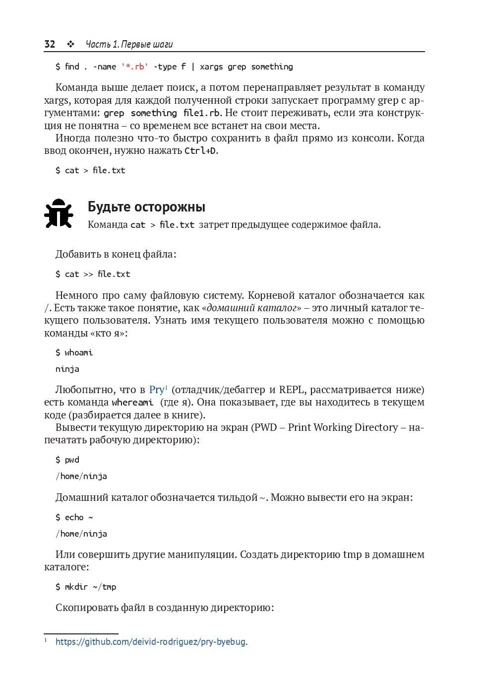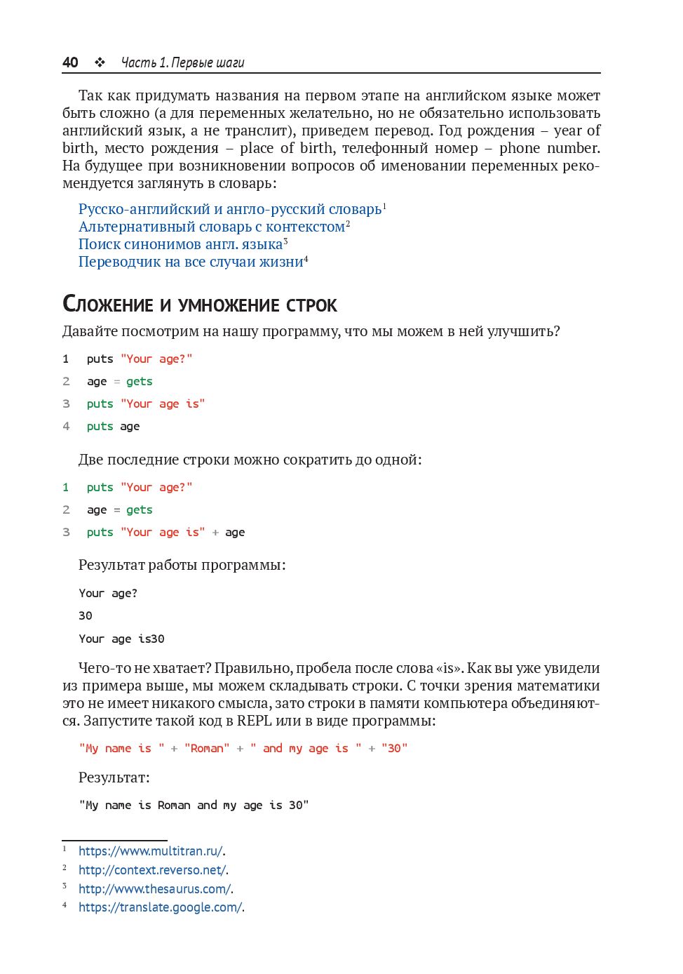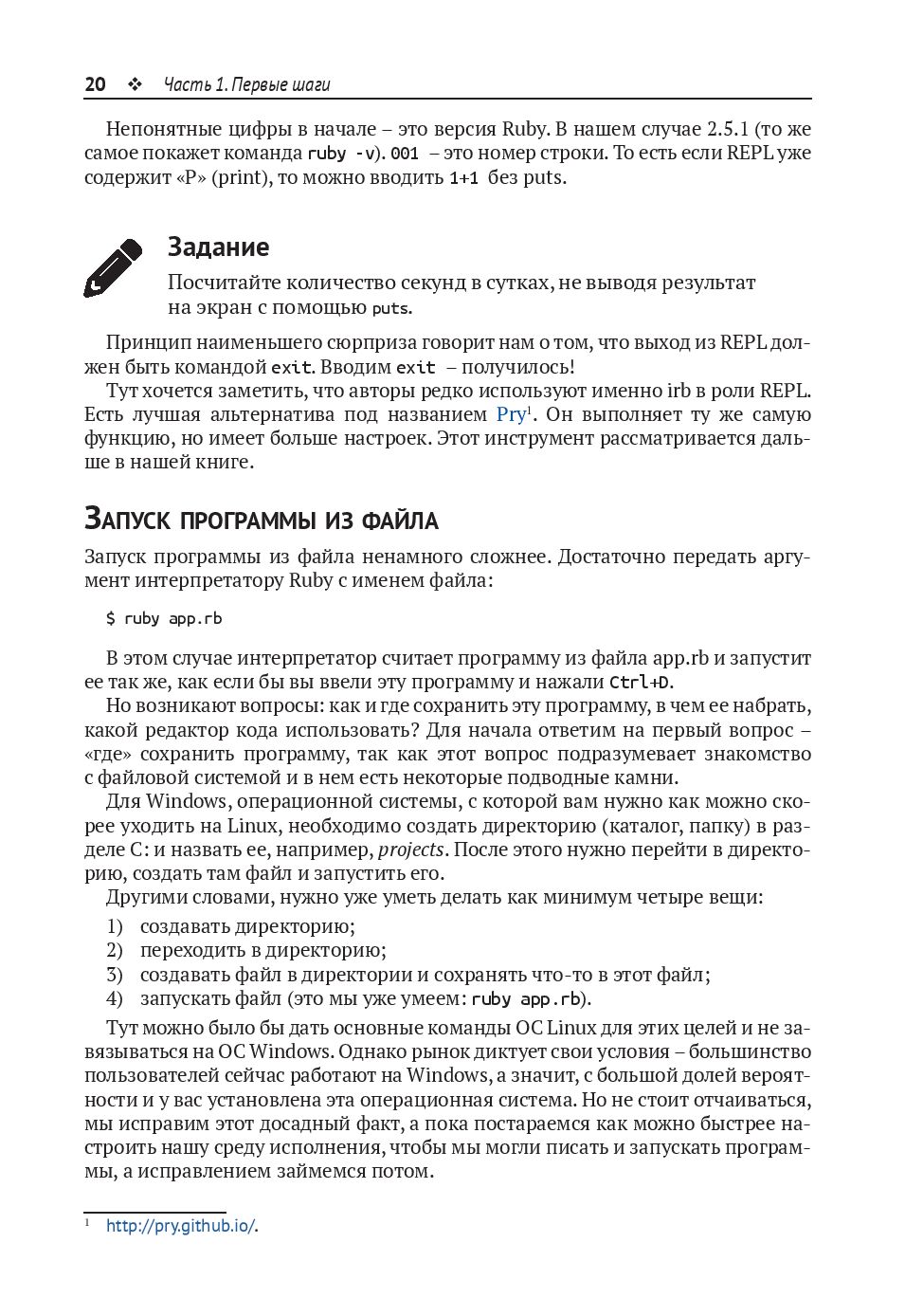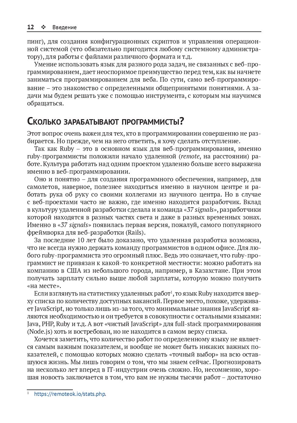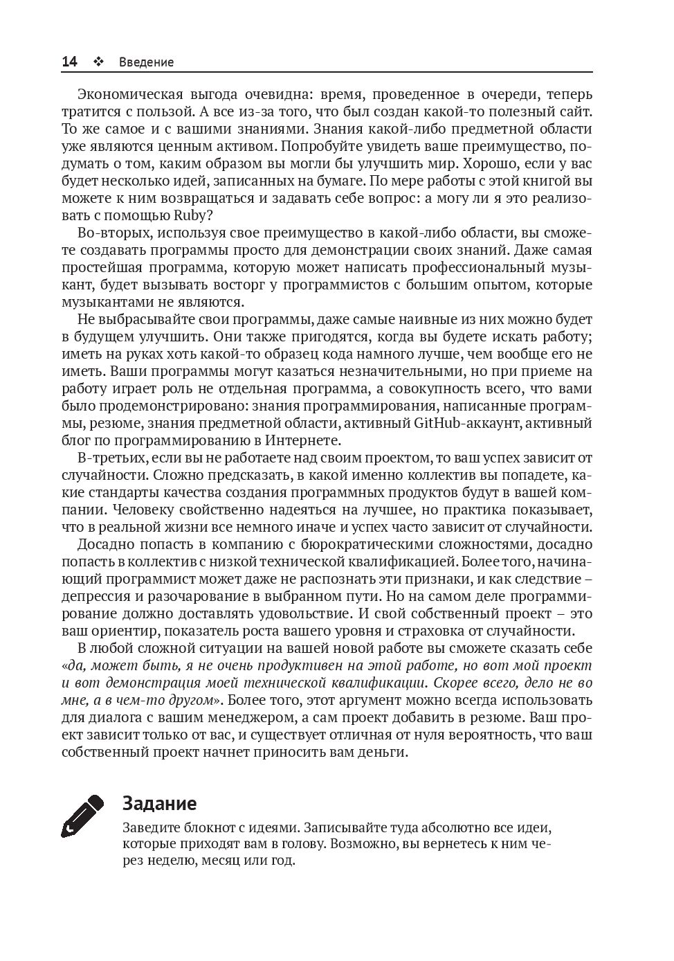 Перед вами книга для самостоятельного знакомства с основами языка Ruby для начинающих разработчиков любого возраста. Последовательное изложение материала позволит не только освоить тонкости языка в удобной игровой форме, но и заложить твердый фундамент для дальнейшего обучения. Многочисленные советы, хитрости и приемы основаны на более чем двадцатилетнем опыте работы автора в российских и зарубежных компаниях – для многих учеников эта книга стала первым шагом на пути смены карьеры. Упражнения и задания, а также многочисленные иллюстрации помогут во всех тонкостях освоить материал.