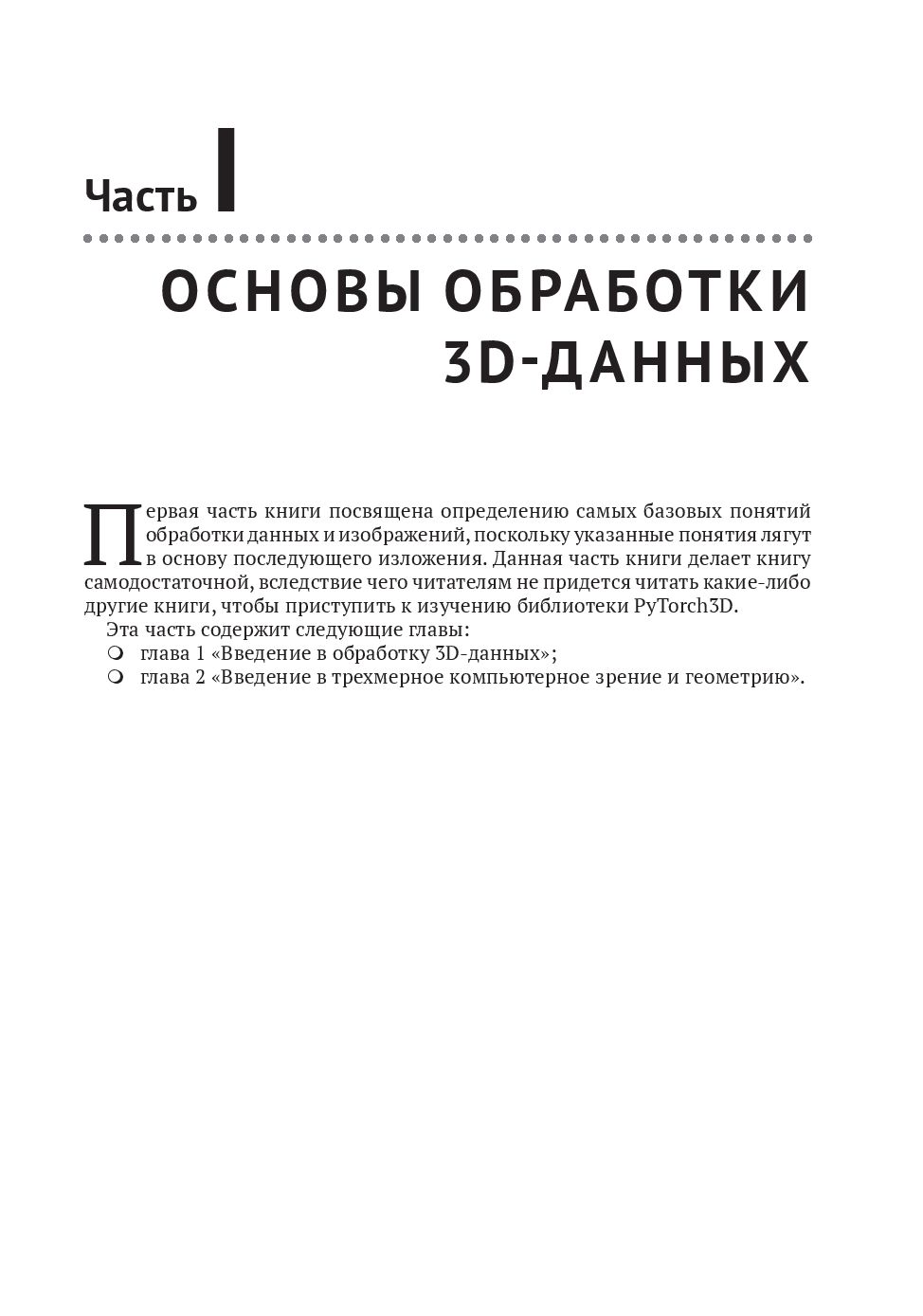 Издание предназначено для специалистов по анализу данных, инженеров машинного и глубокого обучения, которые хотят хорошо разбираться в методах компьютерного зрения с использованием 3D-данных.