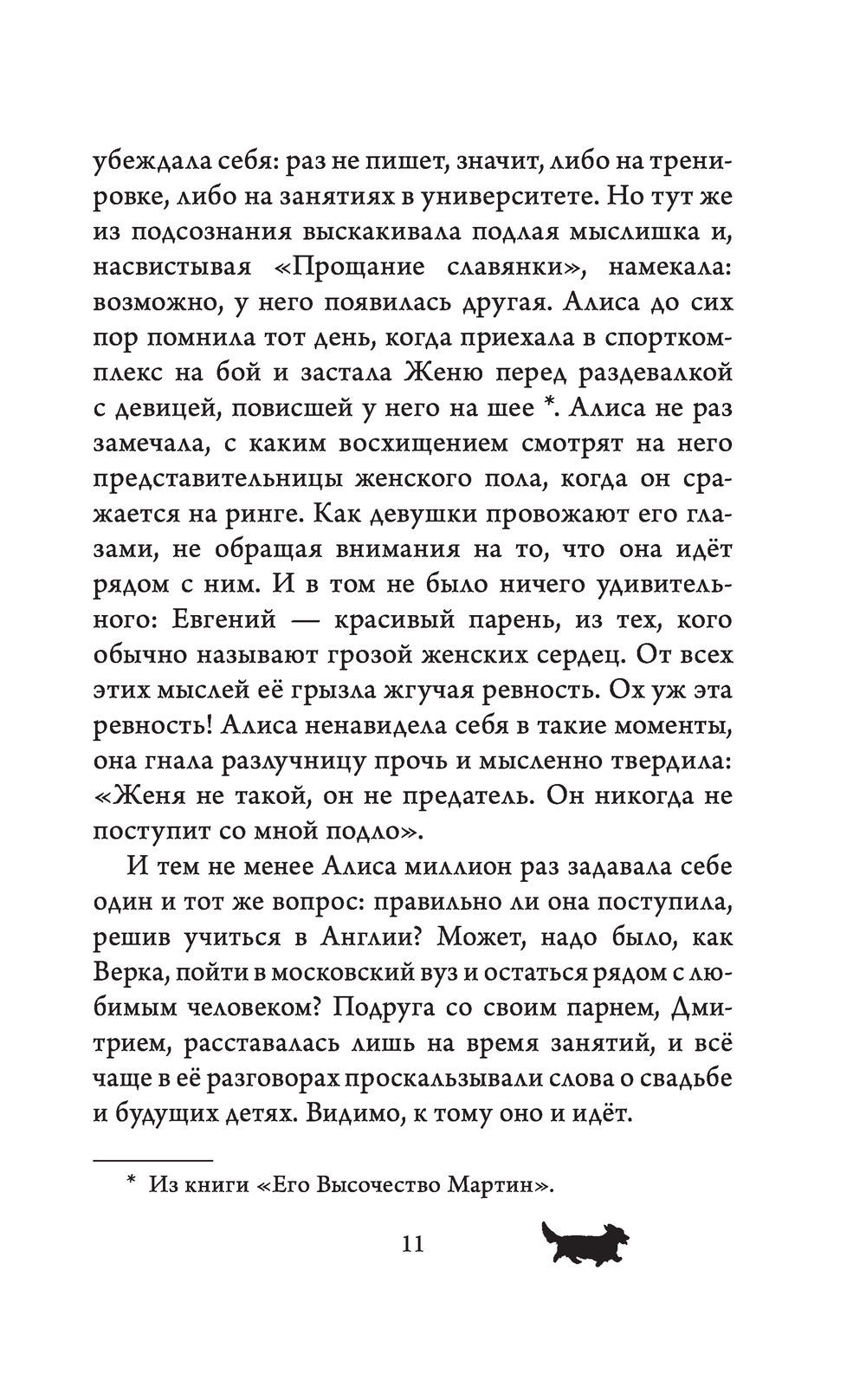 Неужели пути Алисы и Жени навсегда разойдутся после стольких испытаний, которые они прошли вместе? Неужели Мартин больше никогда не поиграет с Женей, а Женя не почешет Мартина за ушком? У людей все слишком сложно. Нет, так не пойдет. Мартин обязан спасти любовь хозяйки!