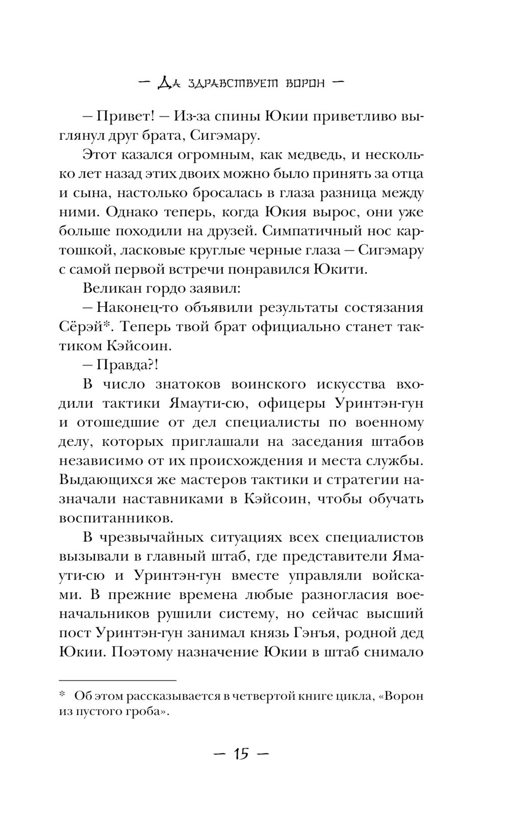 Знакомые нам герои выбрали каждый свой путь: кто-то стал телохранителем и приближенным истинного Золотого Ворона, кто-то прислуживает его супруге. Одни поставили на службу стране свою силу и навыки, другие – ум и знания. И все же сомнения не отступают: не напрасно ли сто лет назад Ямаути отвергла своего бога, в чем предназначение ятагарасу, мстить ли Ямагами за погибших друзей, рискуя всем народом?..