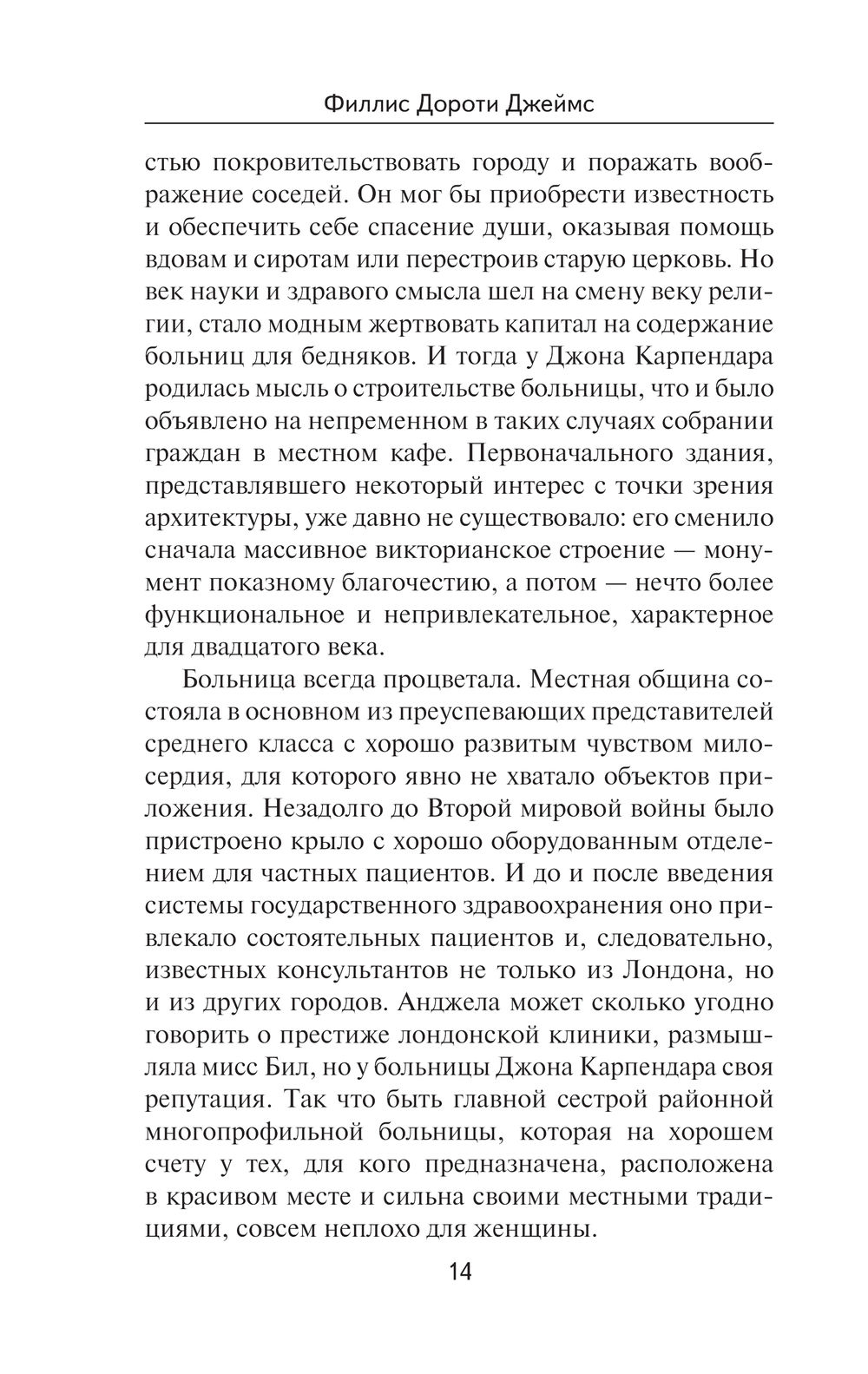 Загадочные убийства происходят в Доме Найтингейла – учебном заведении в самом центре Англии, где готовят сестер милосердия. Неуловимый преступник жестоко расправляется с девушками, призванными облегчать чужую боль и страдания. Похоже, он пытается доказать: лучшее лекарство от всех болезней – смерть...Чтобы остановить убийцу, Адам Дэлглиш вынужден погрузиться в тайный мир Дома Найтингейла – мир скандальных страстей, секса, насилия и стыда.