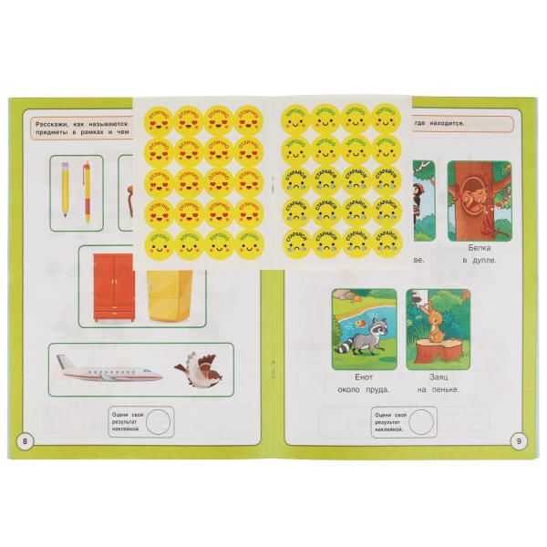 Данное пособие поможет дошкольнику обогатить свой словарный запас, развить речевые навыки. В тетради представлены задания в виде тестов, которые используется не только как инструмент диагностики качества результатов, но и как эффективный метод обучения. Яркие наклейки помогут поощрить ребёнка за тягу к обучению и развитию.
