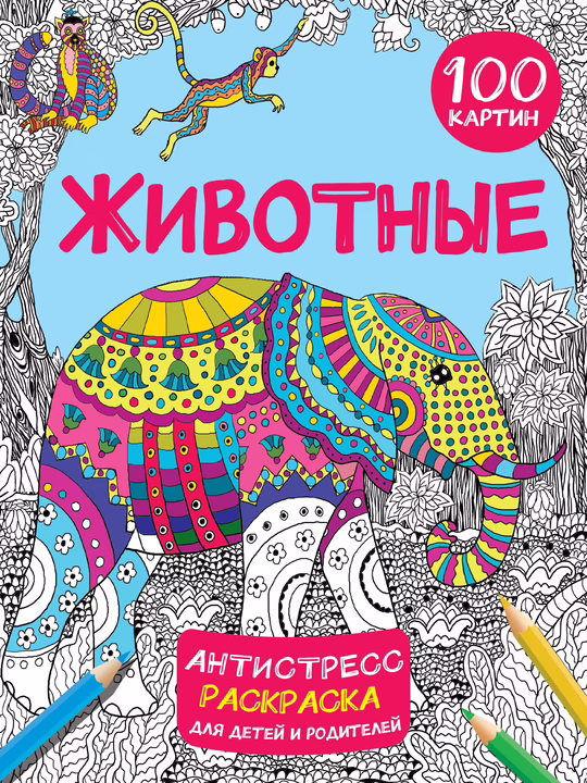 "Животные. 100 картин" – замечательная антистресс-раскраска для любителей животных. На рисунках для расслабляющего отдыха – обитатели тропиков и жители засушливых пустынь, домашние любимцы и животные фермы. Всего – более 100 картинок с запутанными узорами и обилием мелких деталей. Работа с мелкими объектами позволяет полностью погрузиться в процесс раскрашивания и отвлечься от дел.