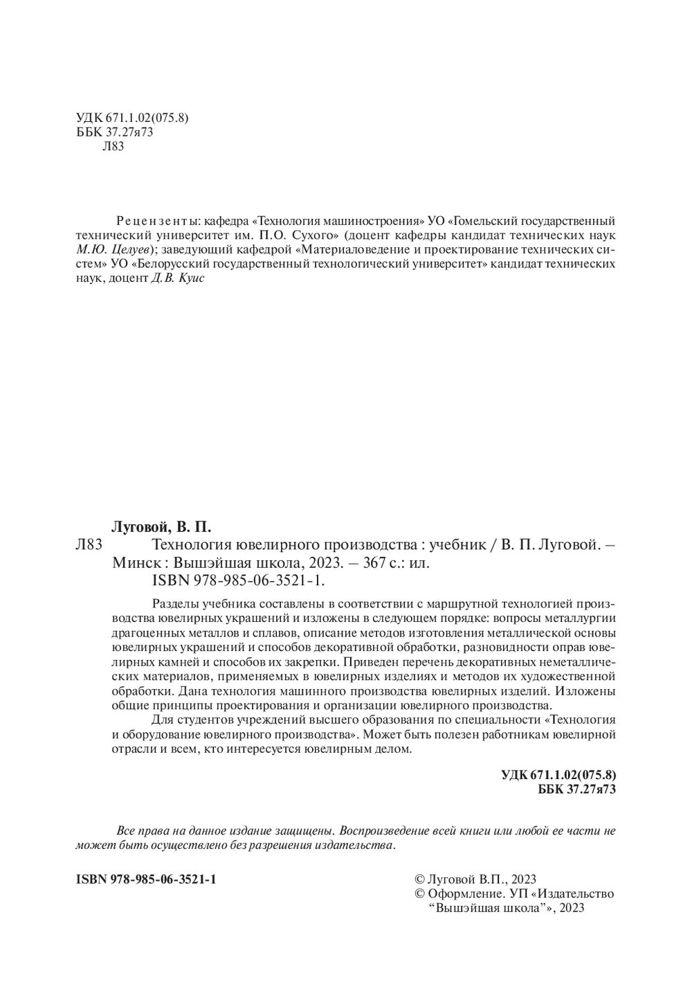 Для студентов учреждений высшего образования по специальности "Технология и оборудование ювелирного производства". Может быть полезен работникам ювелирной отрасли и всем, кто интересуется ювелирным делом.