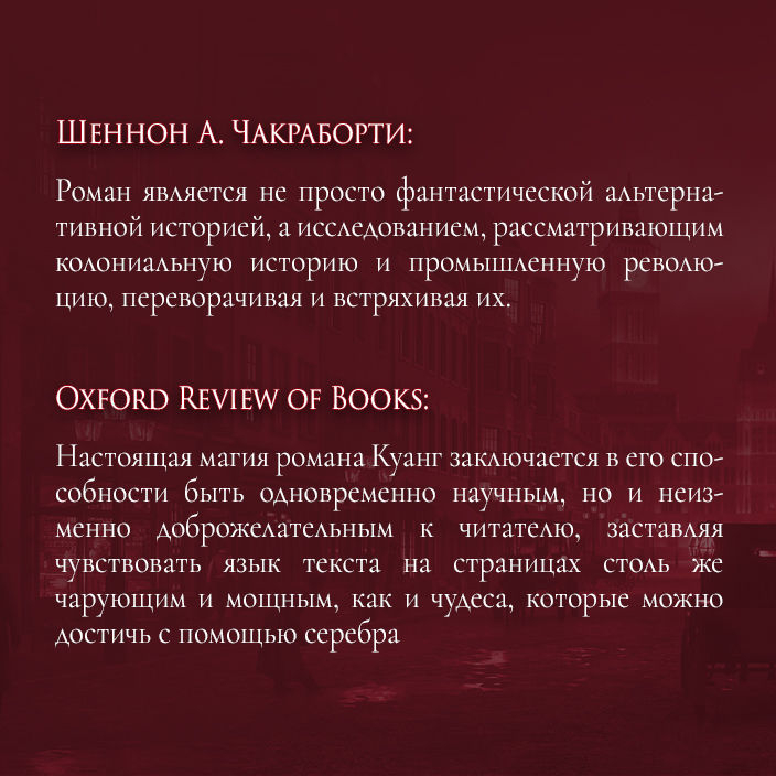 Робин Свифт потратил многие годы на изучение языков, чтобы поступить в Королевский институт. Учеба в Оксфорде для него – это утопия, наполненная знаниями. Однако познакомившись с тайным обществом "Гермес" и поняв, какой властью обладают эти знания, Робин приходит к выводу, что служение Вавилону означает служение Империи. Теперь он стоит перед выбором...