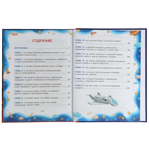 Настоящий волшебник Карнадаш, чьи рисунки в буквальном смысле оживают, и его друг, мастер на все руки Самоделкин, отправляются в очередное космическое путешествие и оказываются на Марсе – планете, где всё наоборот: конфеты горькие, мороженое горячее, расчёска приводит волосы в бесорядок, а не расчёсывает их и т.п. Множество смешных моментов и красочное художественное оформление сделает погружение в эту увлекательную историю ещё более приятным.