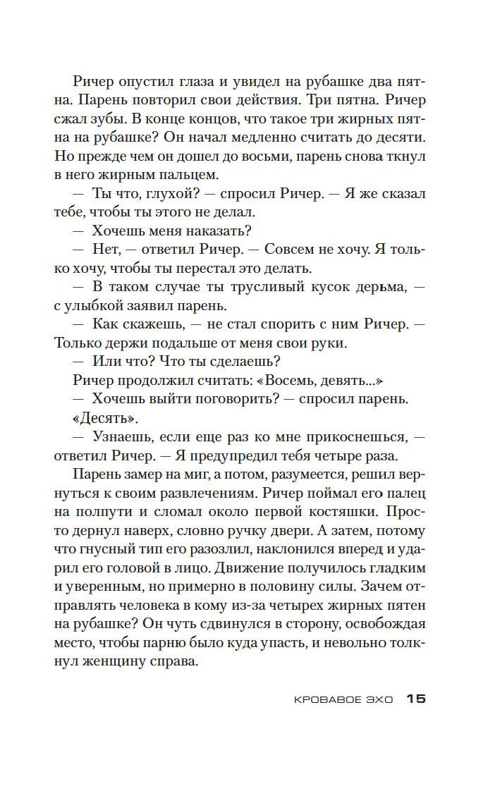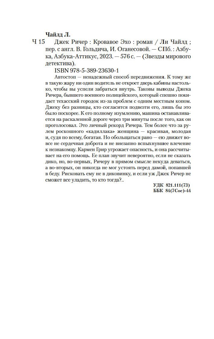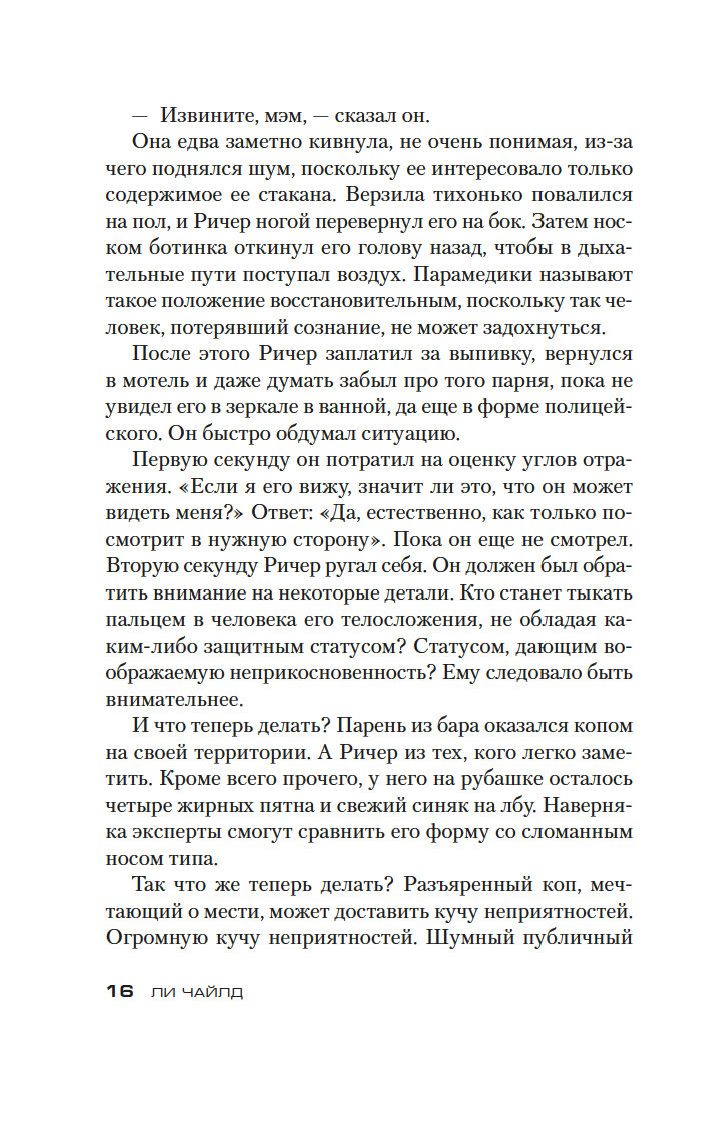 Автостоп – ненадежный способ передвижения. К тому же в такую жару ни один водитель не откроет дверь кабины настолько, чтобы вы успели забраться внутрь. Таковы выводы Джека Ричера, бывшего военного полицейского, который спешно покидает техасский городок из-за проблем с одним местным копом. Джеку без разницы, кто согласится подвезти его, лишь бы это было поскорее. К его полному изумлению, машина останавливается на раскаленной дороге через три минуты после того, как он проголосовал. Это личный рекорд Ричера. Тем более что за рулем роскошного "кадиллака" женщина – красивая, молодая и, судя по всему, богатая. Но обольщаться рано – ею движет вовсе не сердечная доброта и не внезапно вспыхнувшее влечение к незнакомцу. Кармен Грир угрожает опасность, и она рассчитывает на его помощь. Ее план звучит невероятно, если не сказать дико, но, во-первых, Ричеру в прямом смысле некуда деваться, а во-вторых, он никогда не мог устоять перед дамой, попавшей в беду. Рисковать ему не в диковинку, и если уж Джек Ричер не сможет все уладить, то кто тогда?..